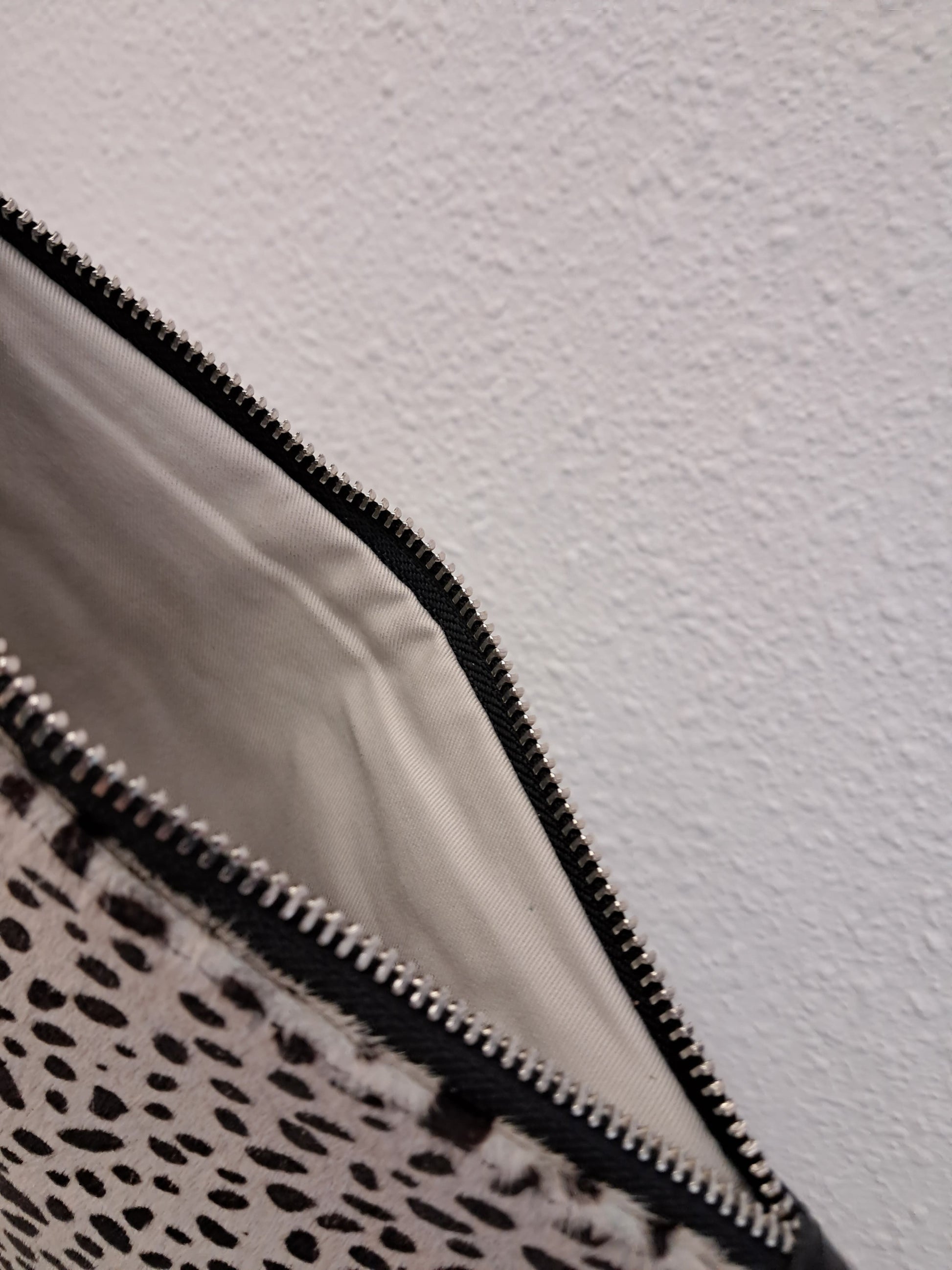 Bolso bandolera DOBRA piel con pelo dálmata blanco