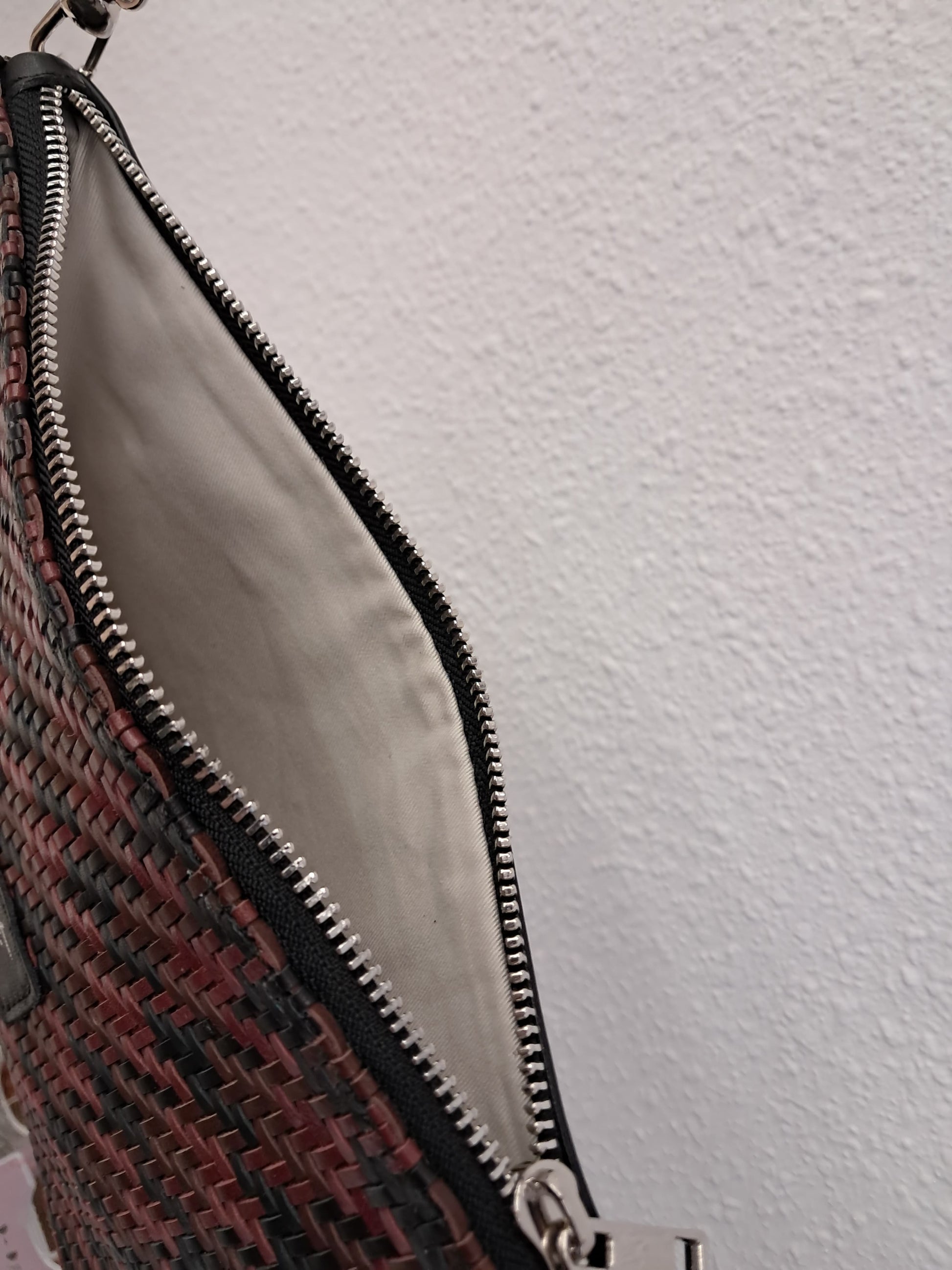 Bolso bandolera DOBRA piel trenzada negro y granate
