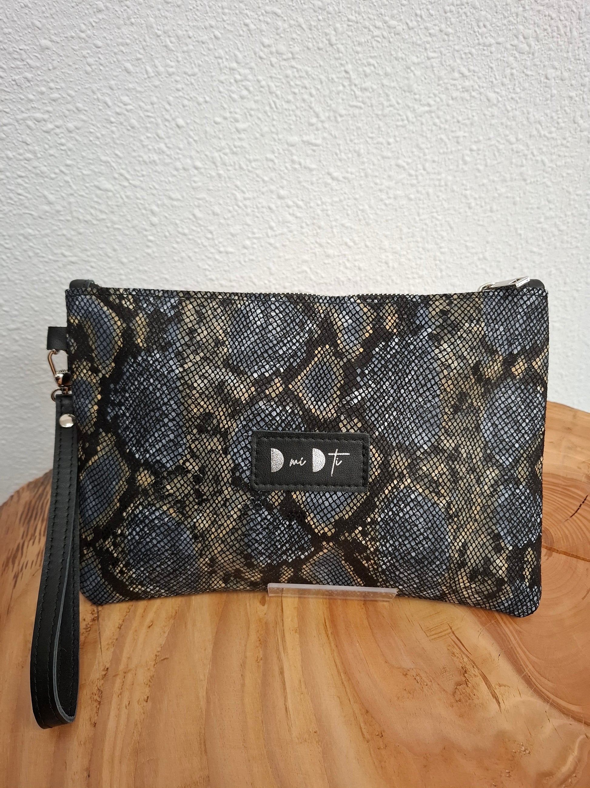 Bolso de mano DOBRA piel serpiente negro, azul y beige