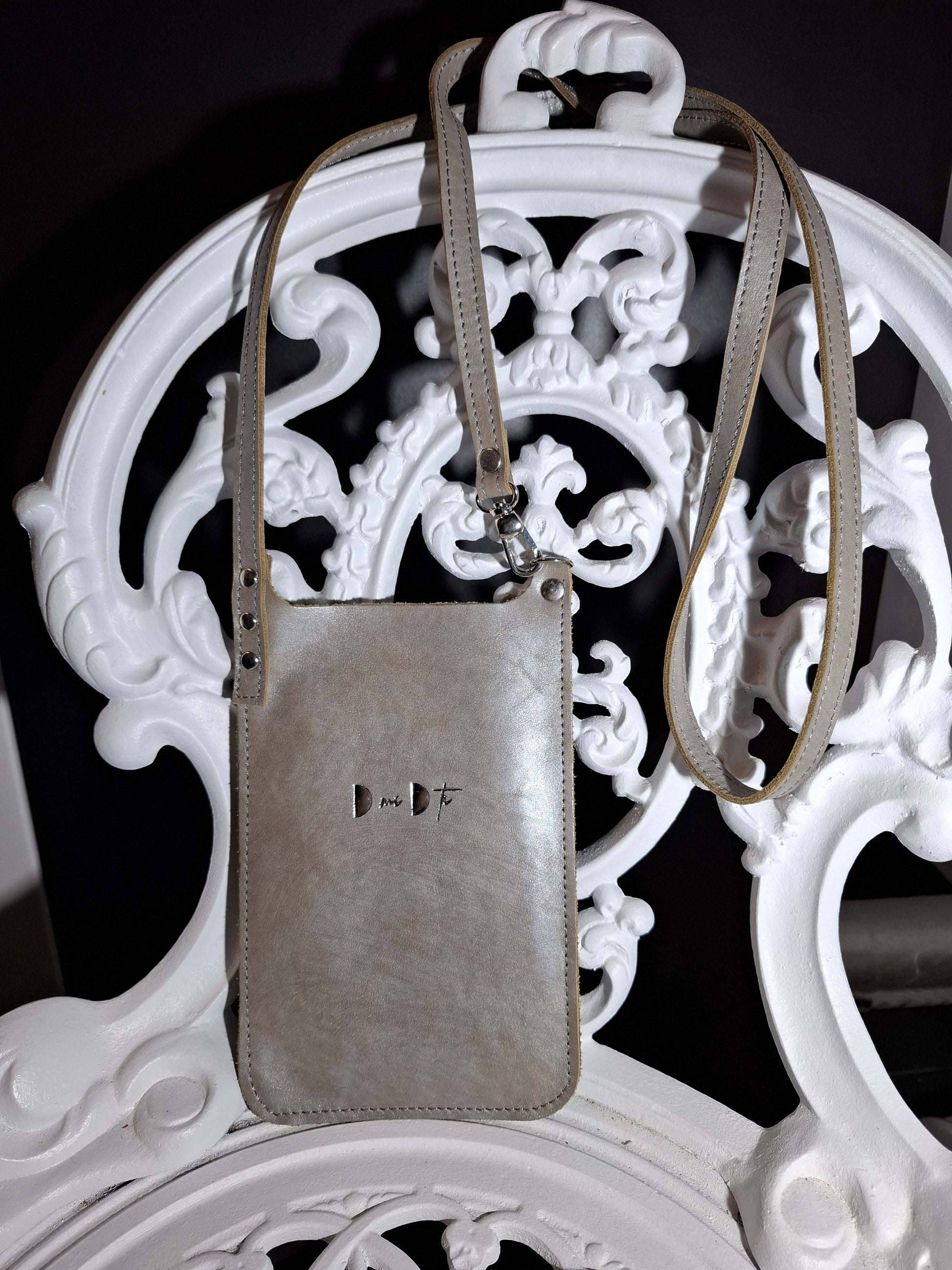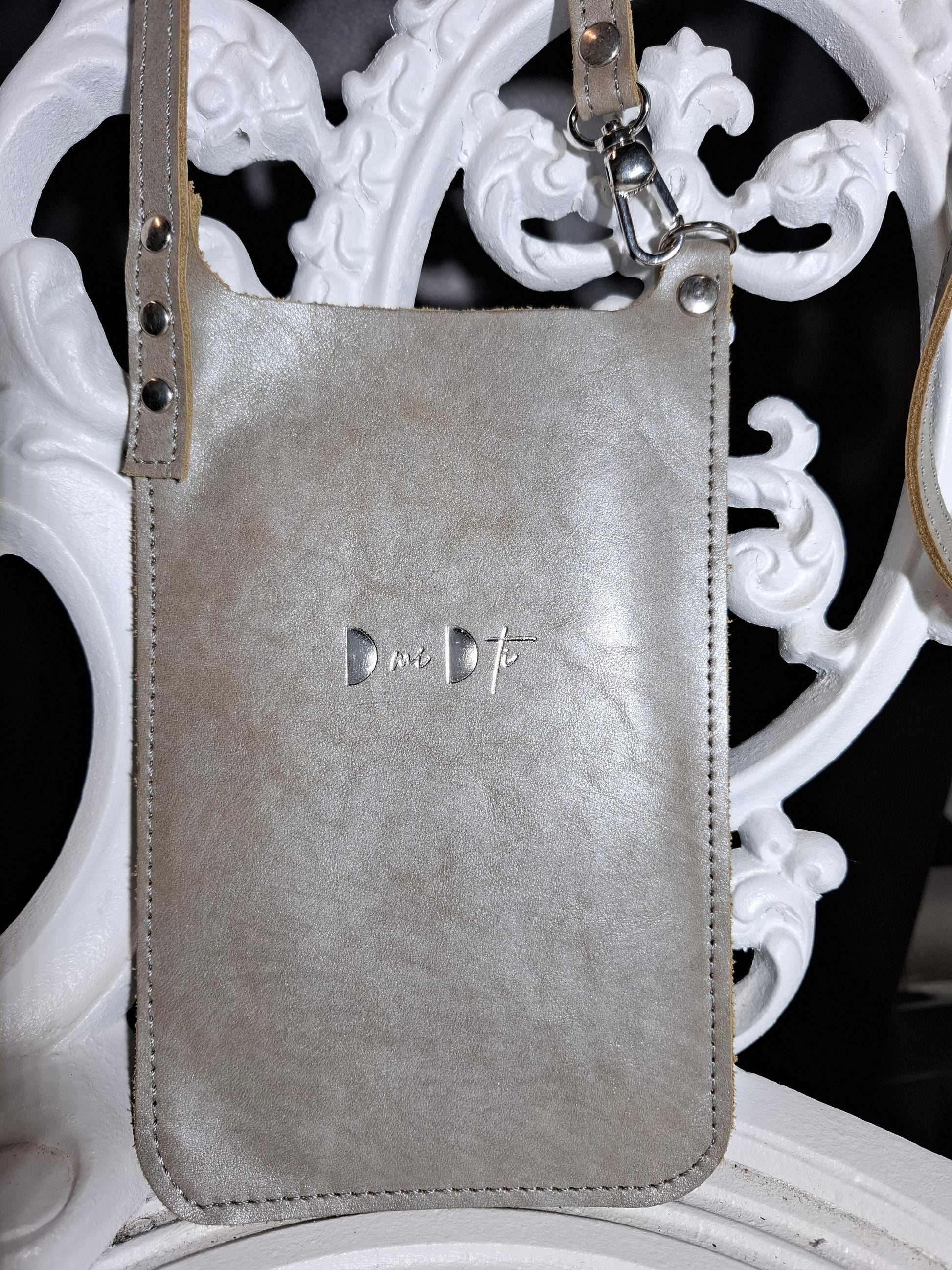 Bolso de móvil de piel anacarada gris
