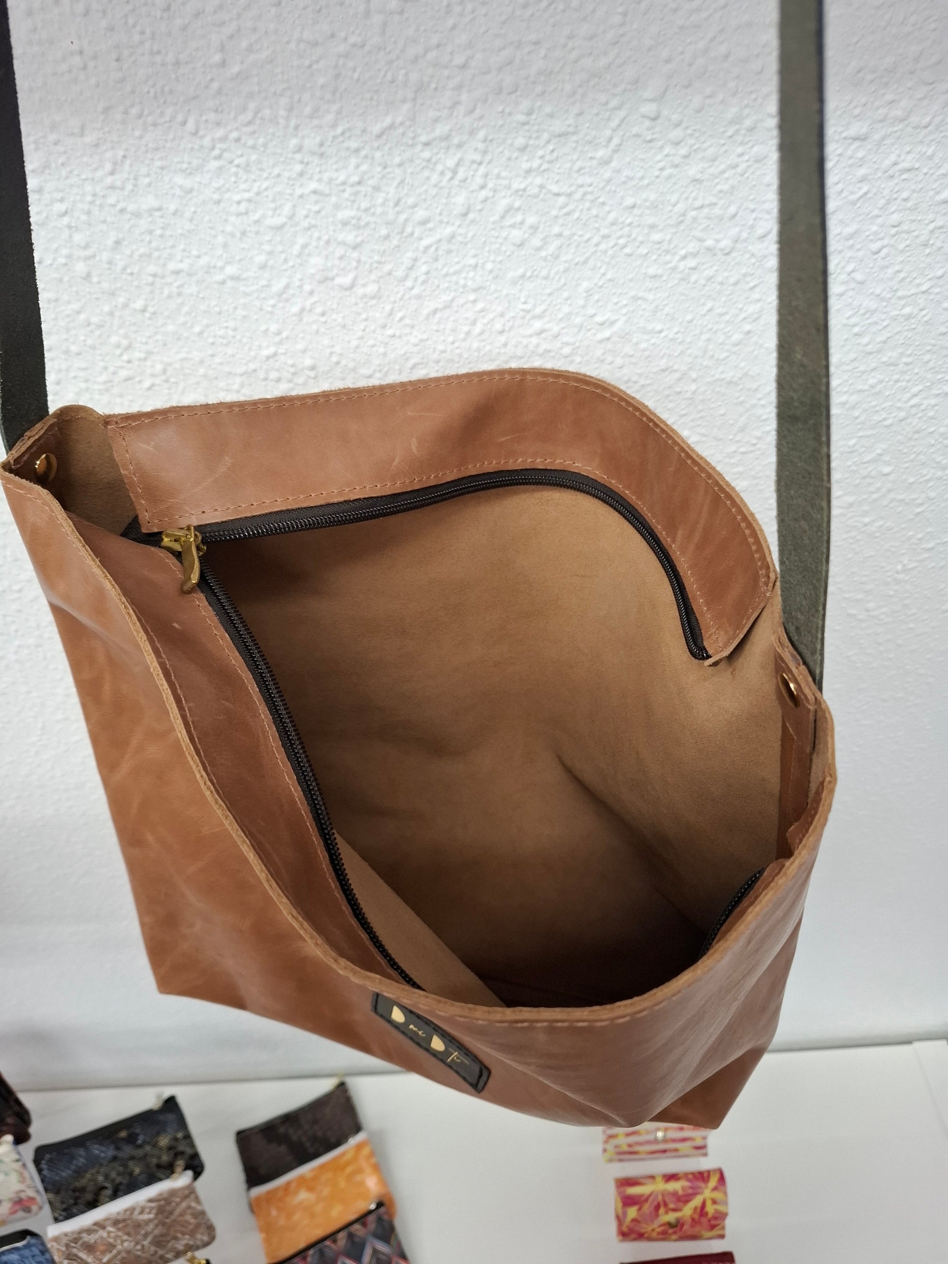 Bolso de piel con cierre de cremallera.