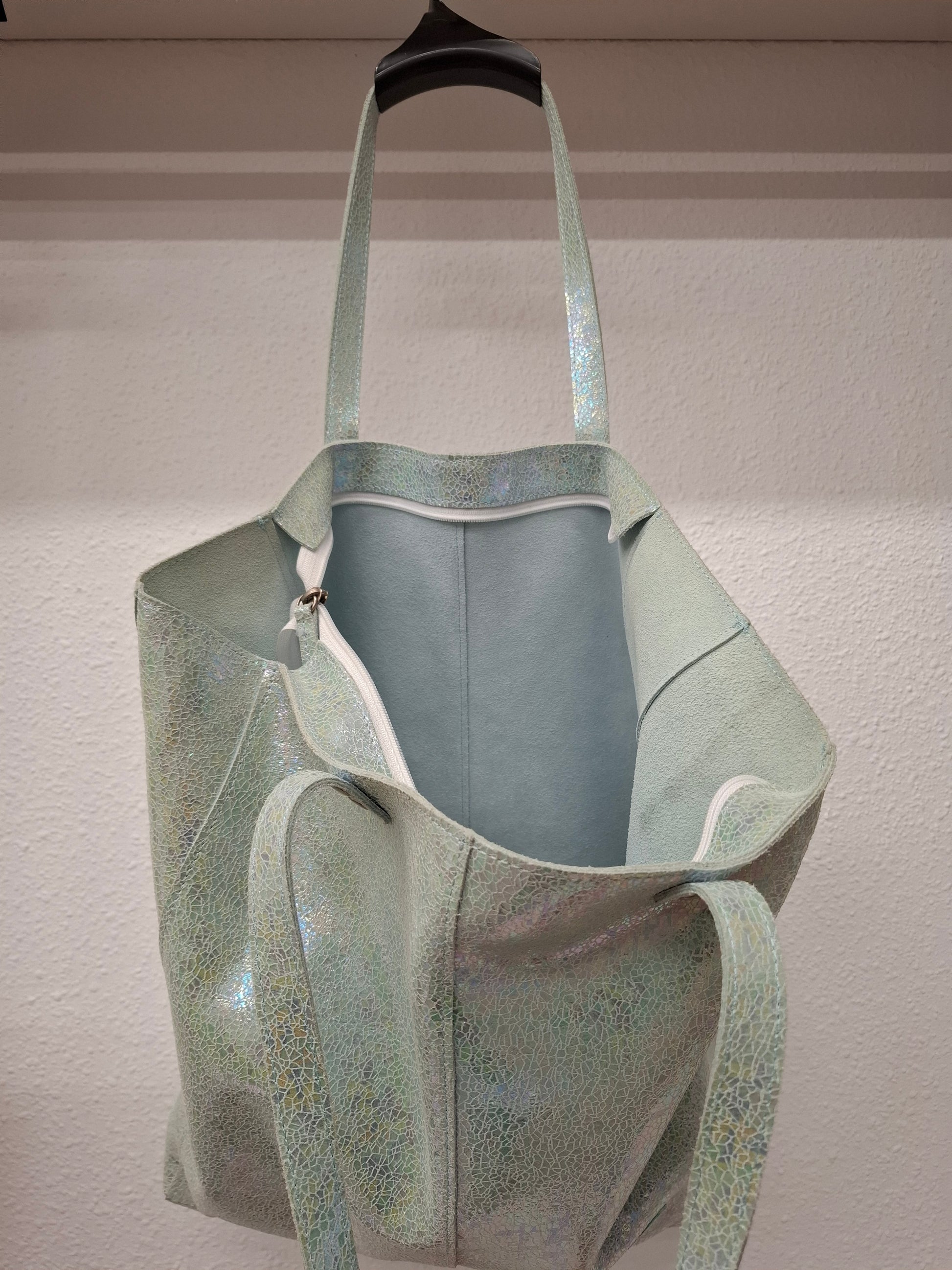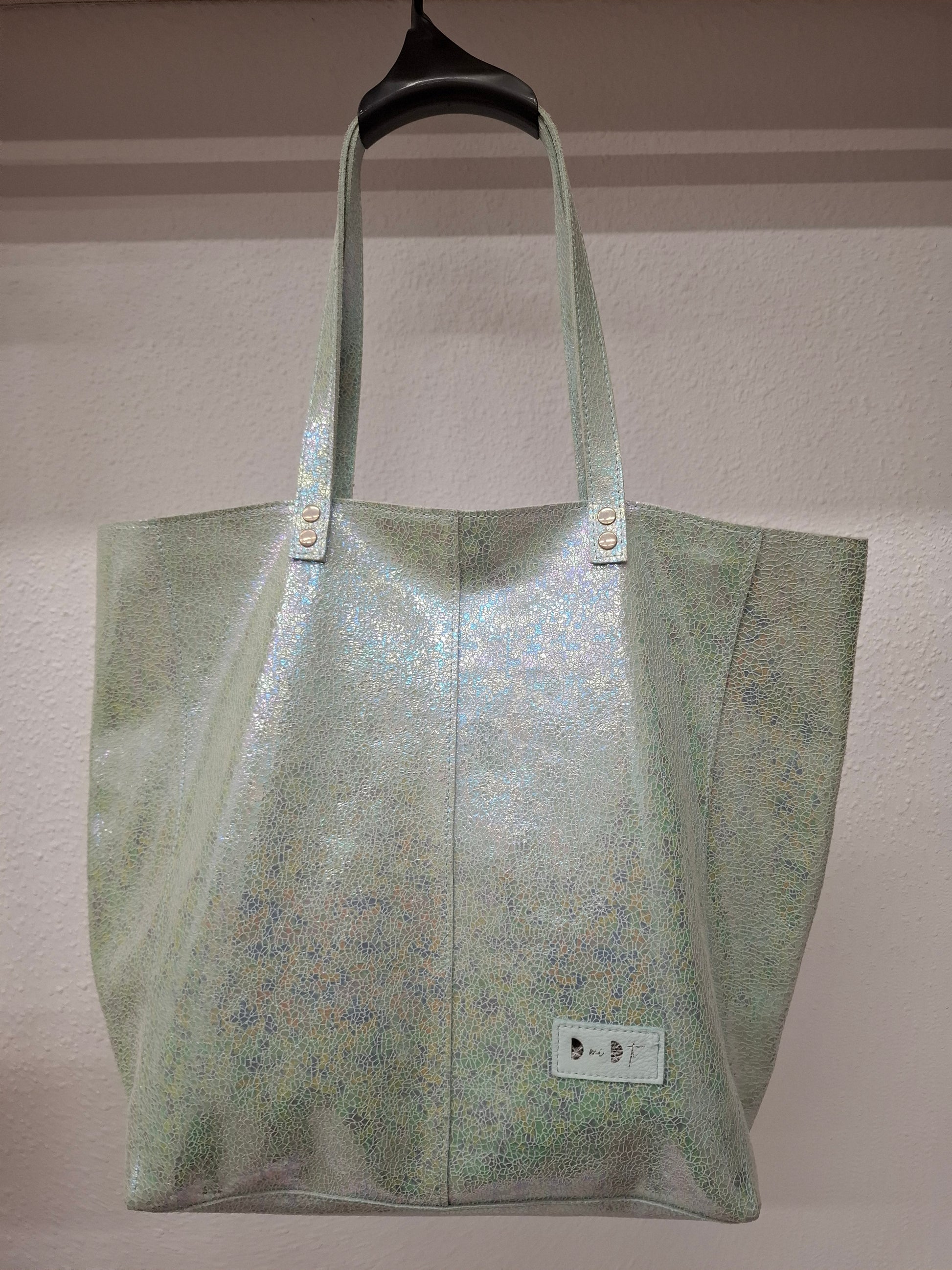 Bolso shopper VEGA XL piel brillante tornasolada aguamarina