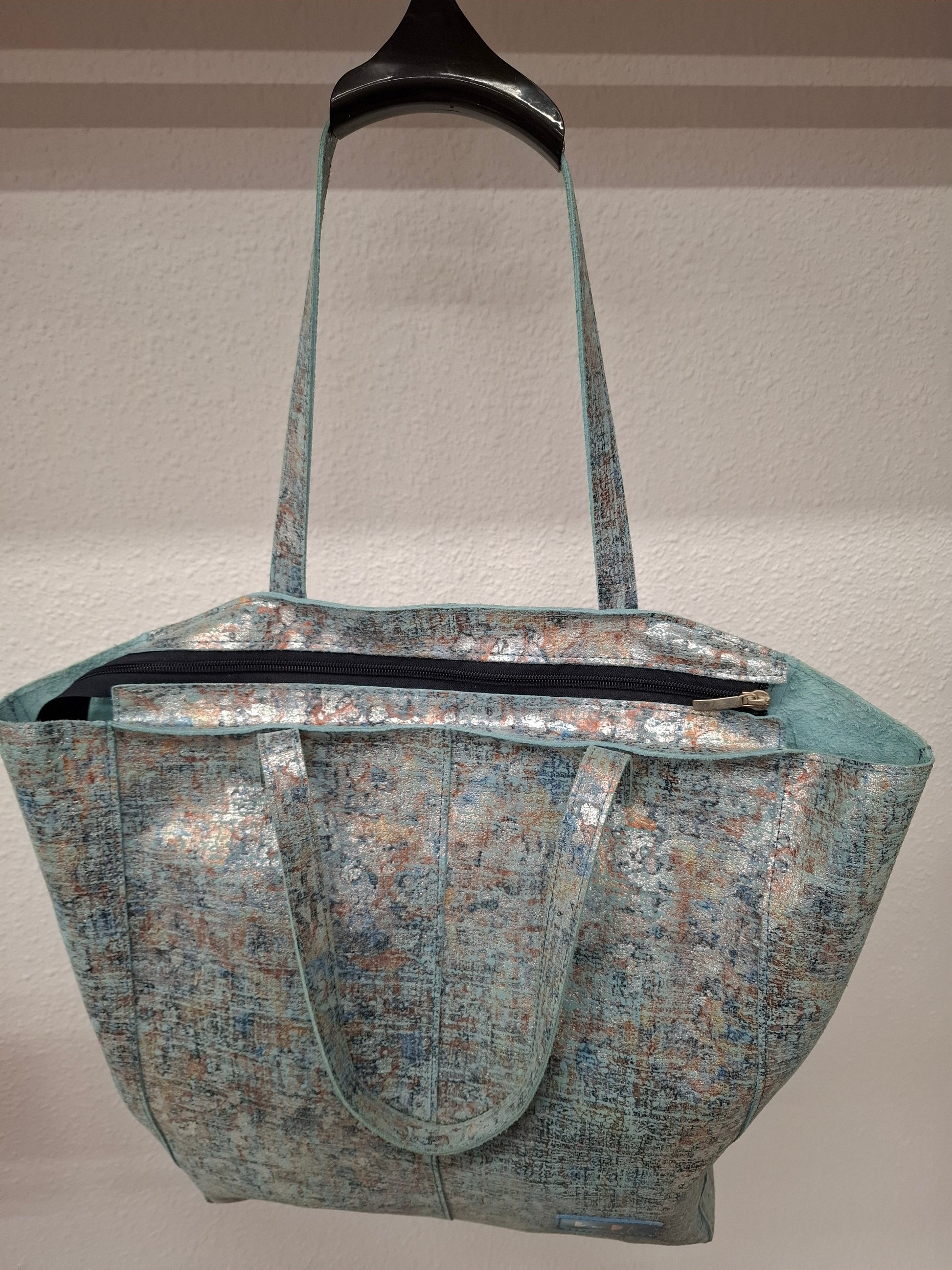Bolso shopper VEGA XL piel jaspeado brillo azul