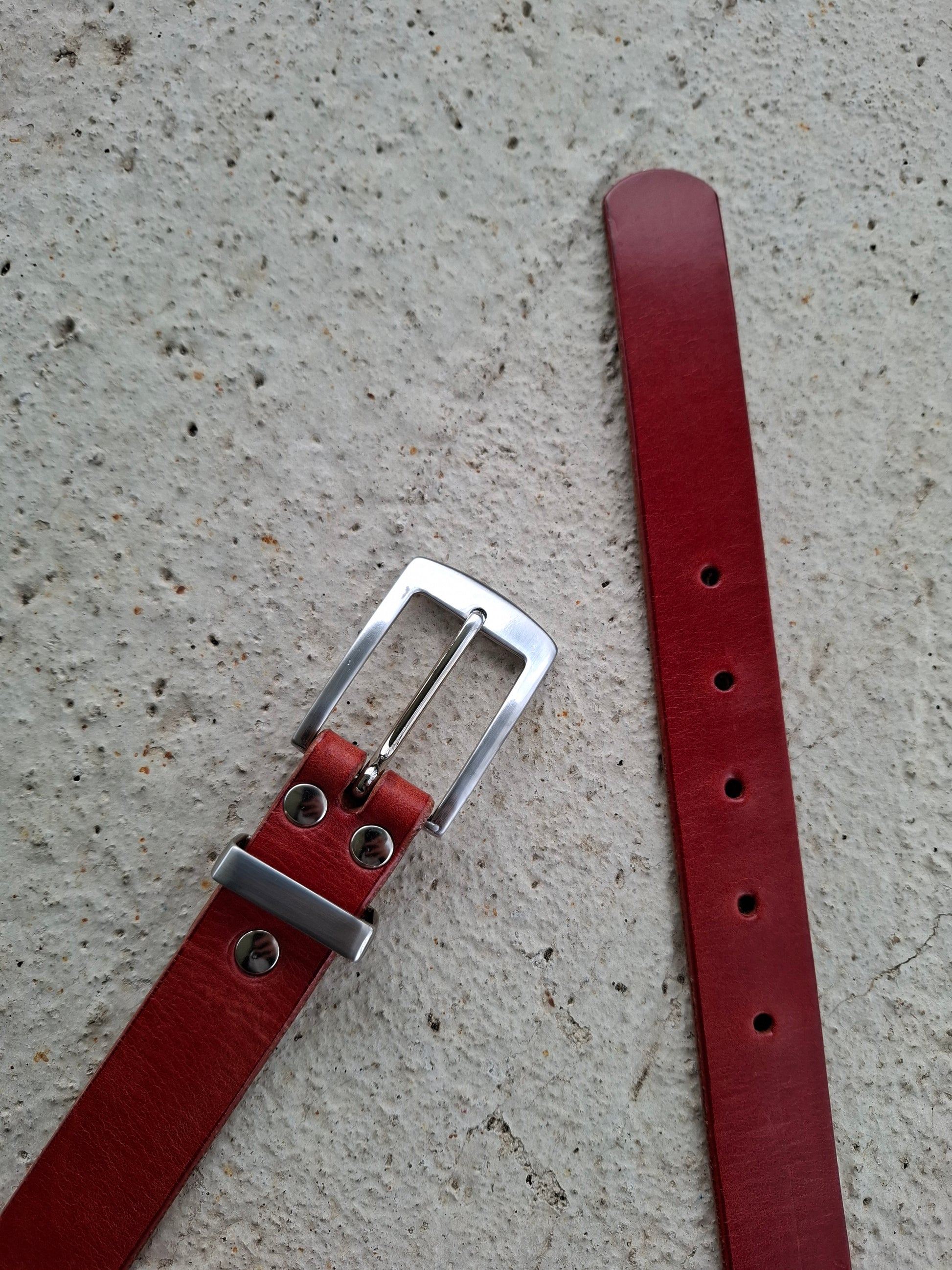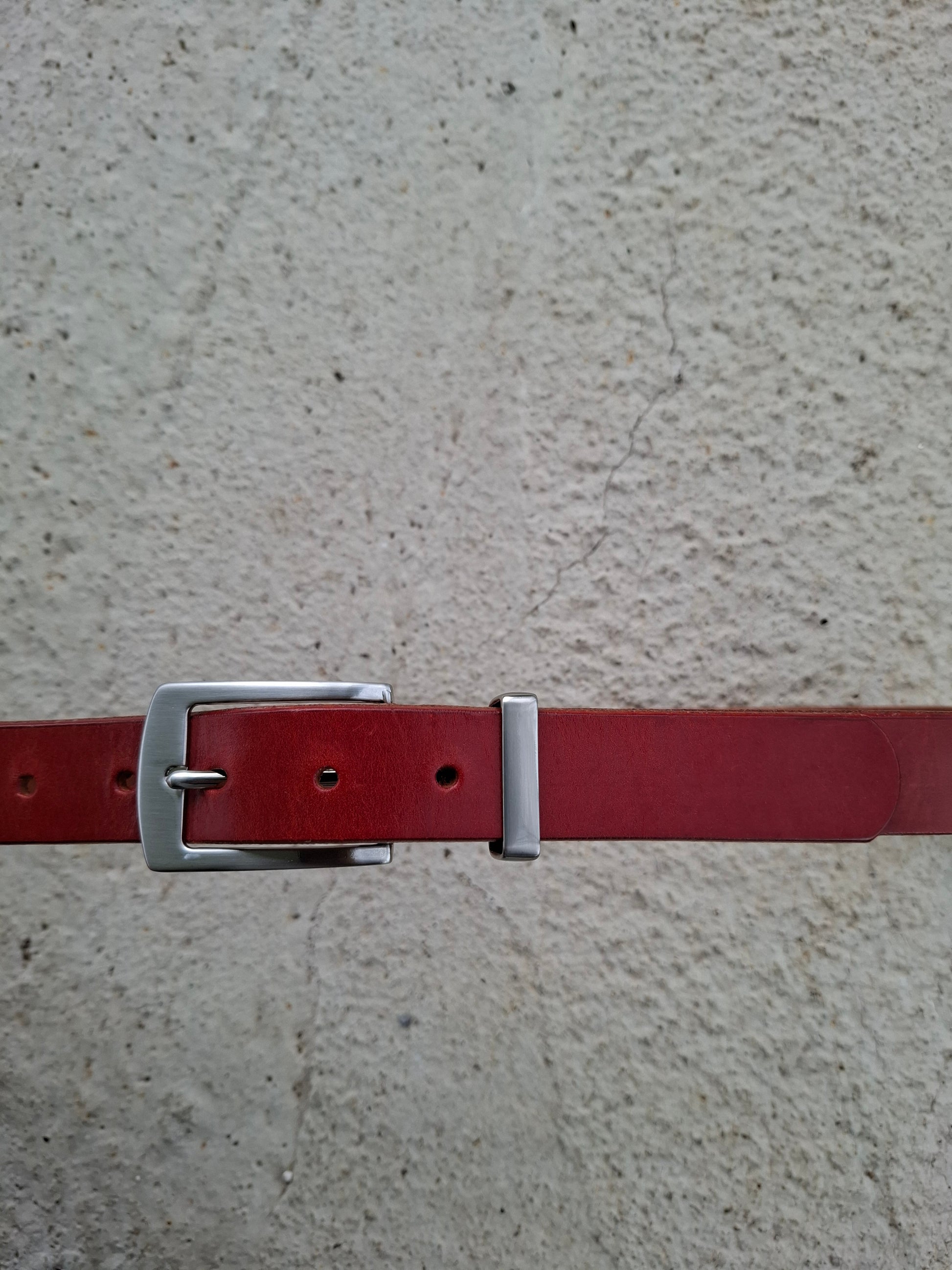 Cinturón hombre de piel cereza 2,5cm hebilla plata satinada