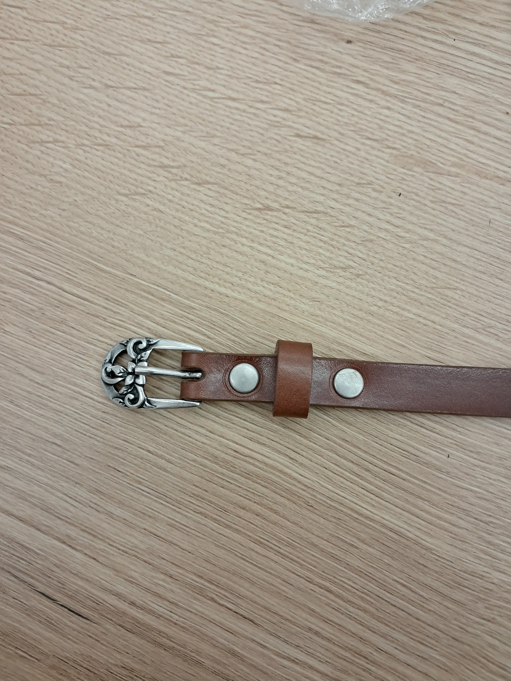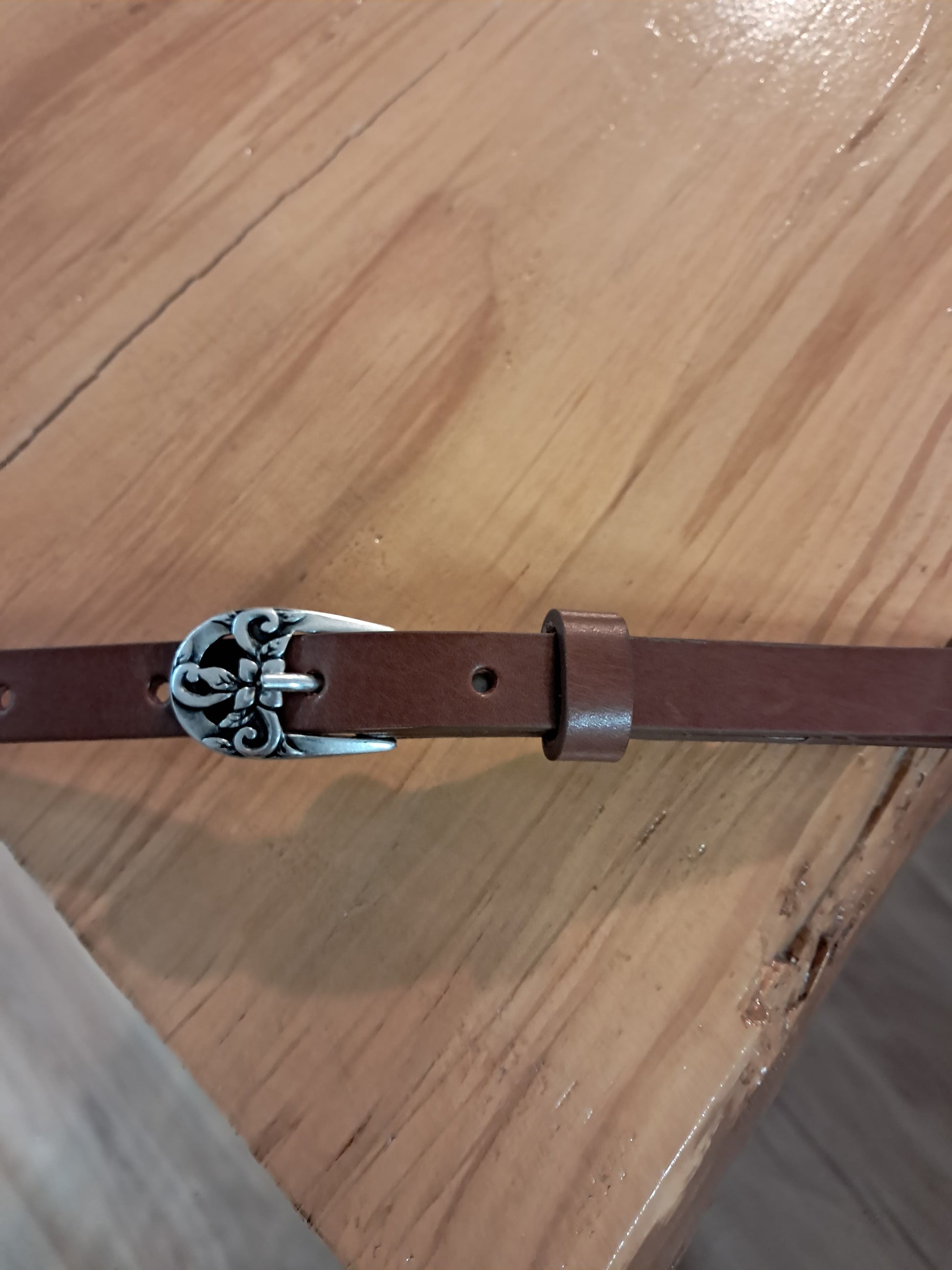 Cinturón de piel marrón 1,5cm hebilla plata vieja
