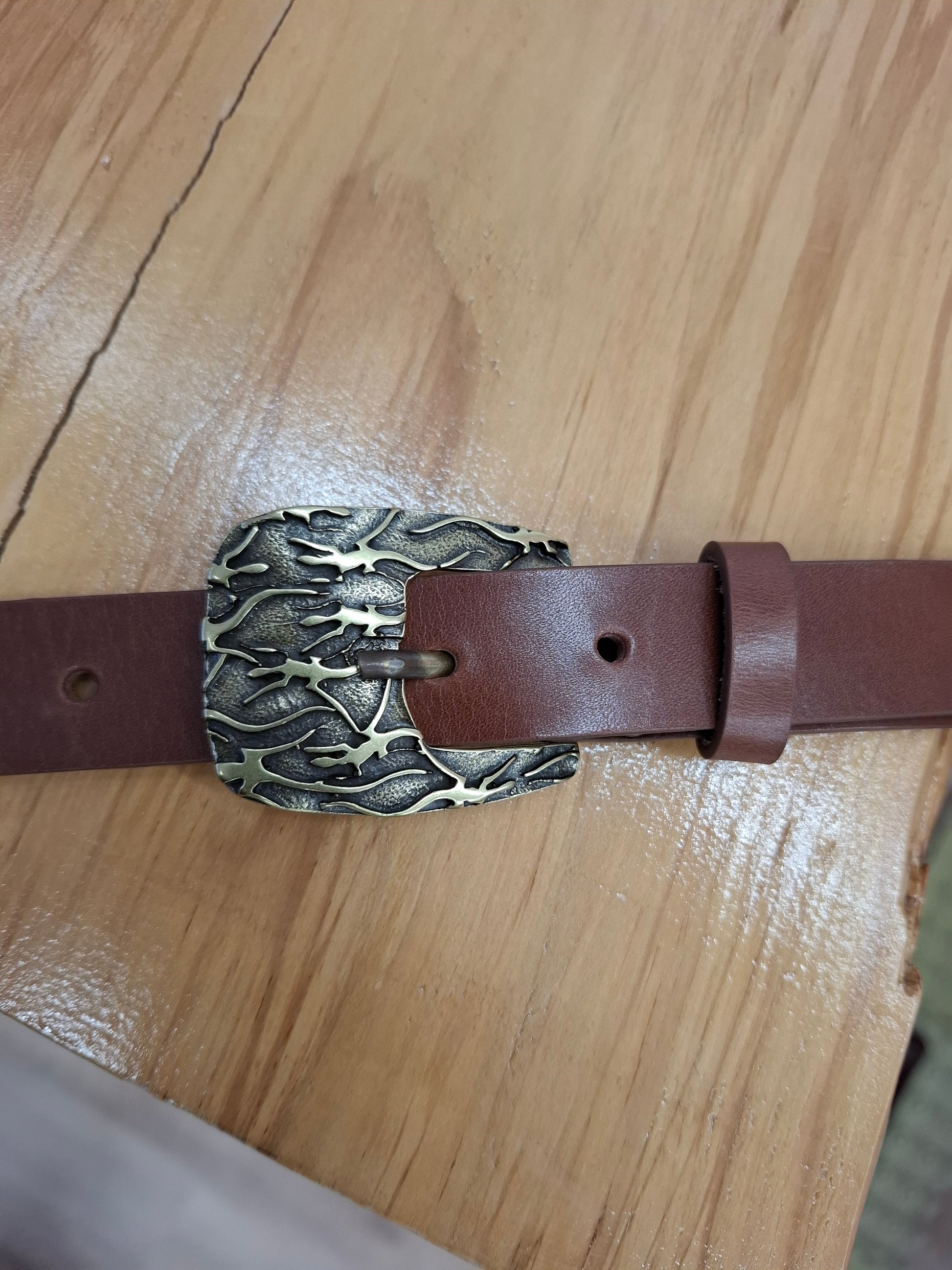 Cinturón de piel marrón 2,5cm hebilla oro viejo lagartijas