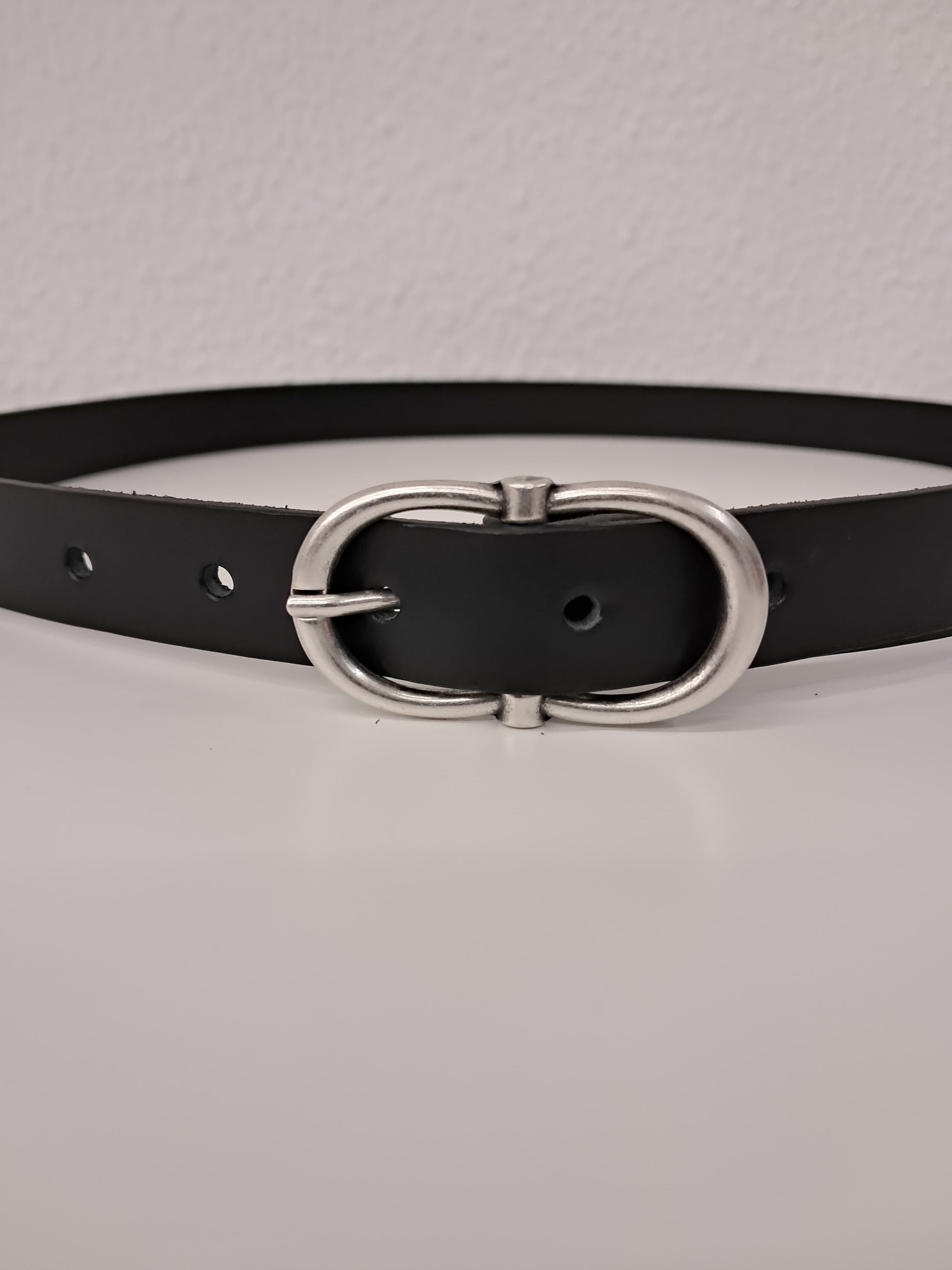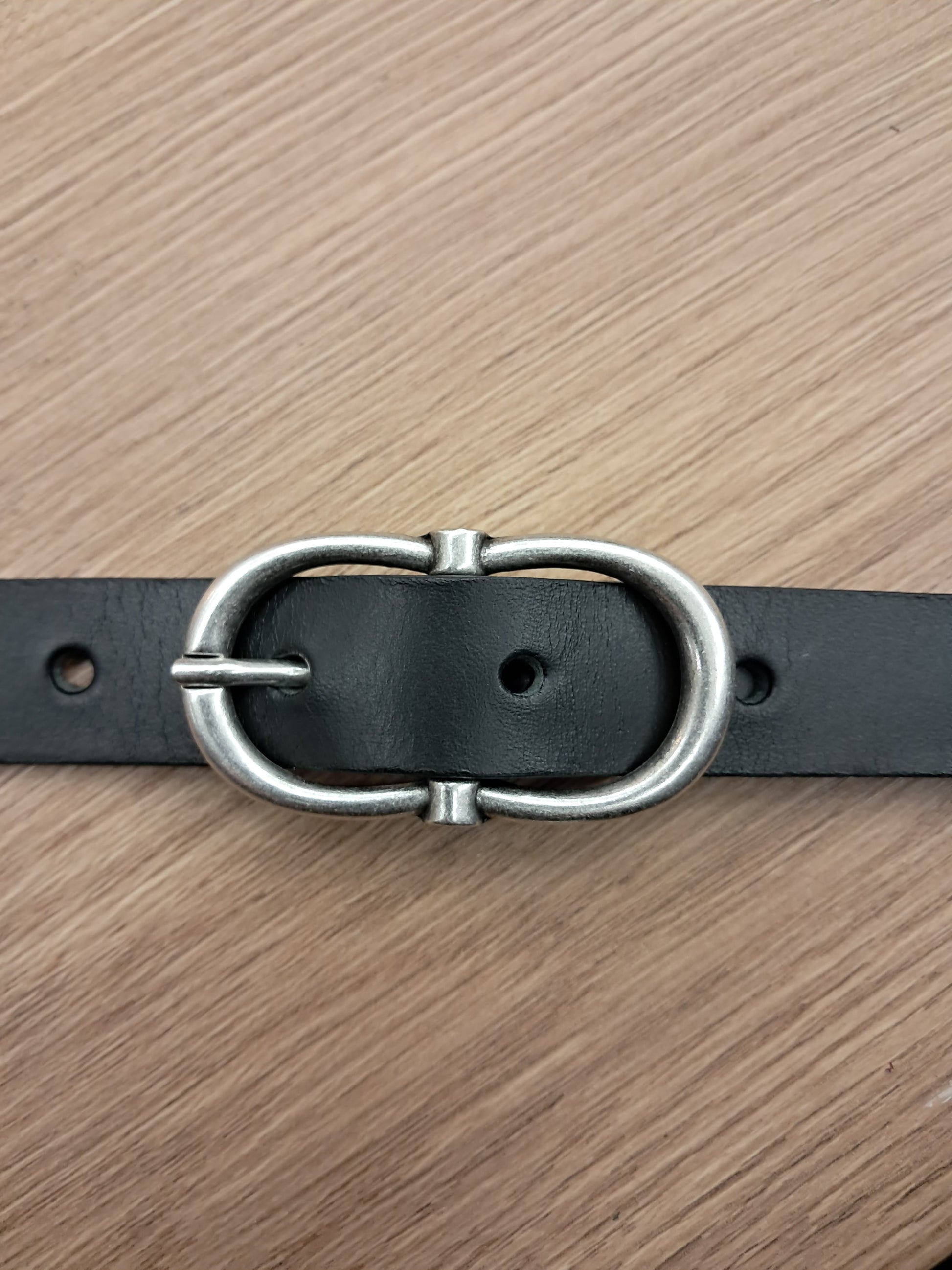 Cinturón de piel negro 2cm hebilla ocho plata vieja