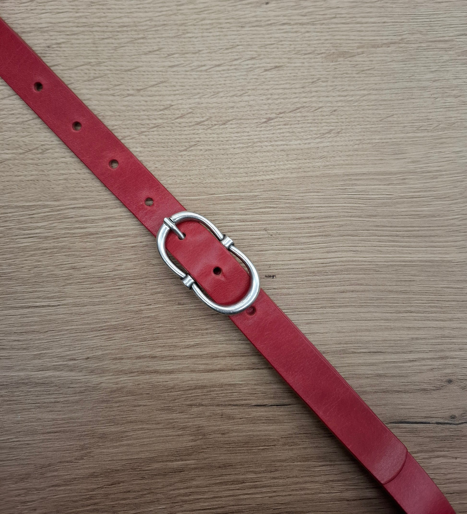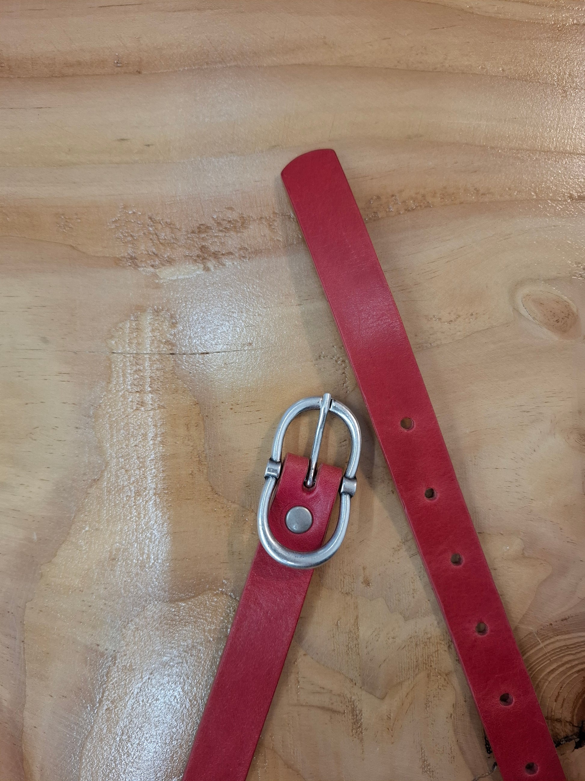 Cinturón de piel rosa 2cm hebilla ocho plata vieja