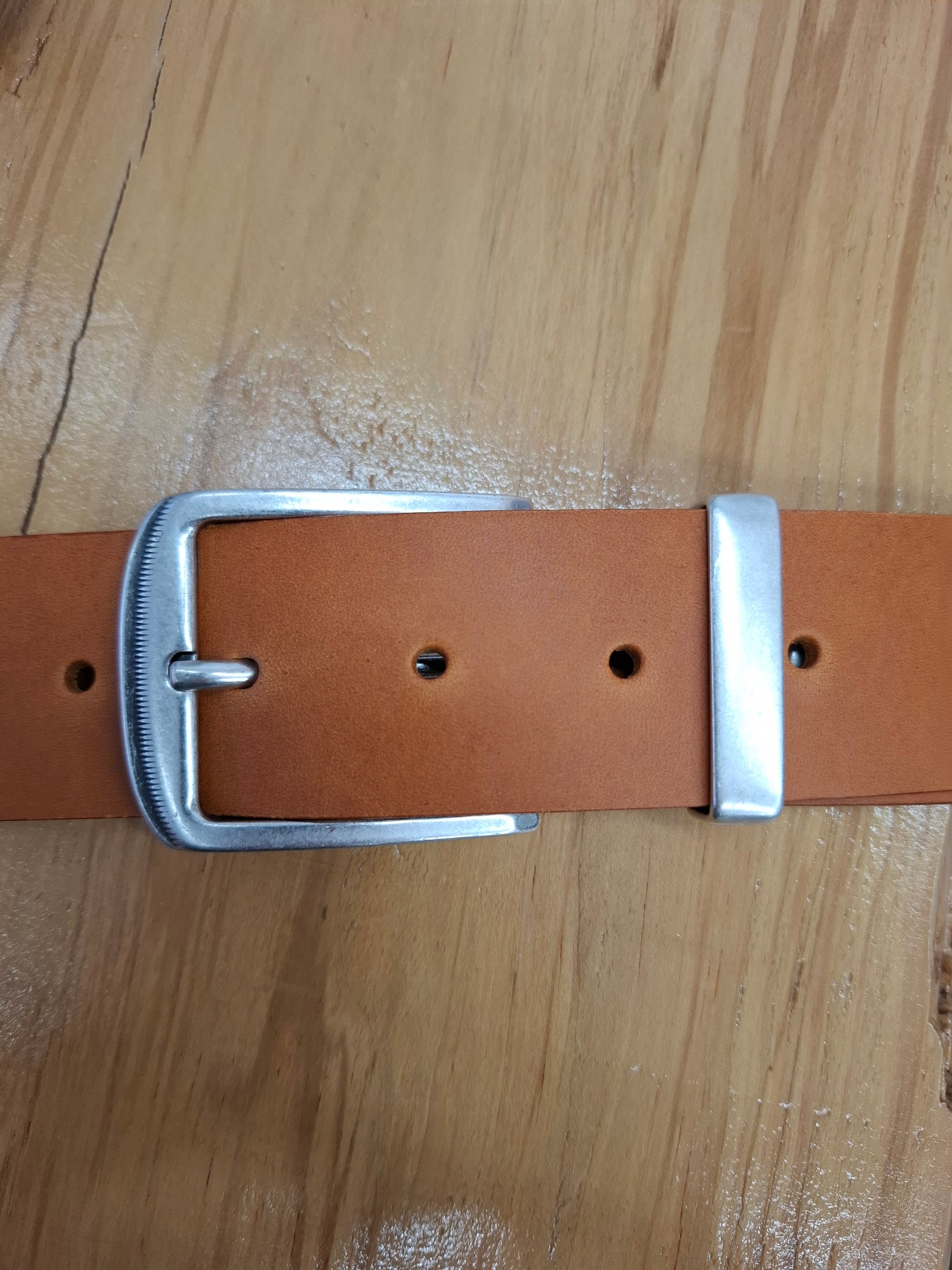 Cinturón hombre de piel camel 4cm hebilla plata vieja muescas