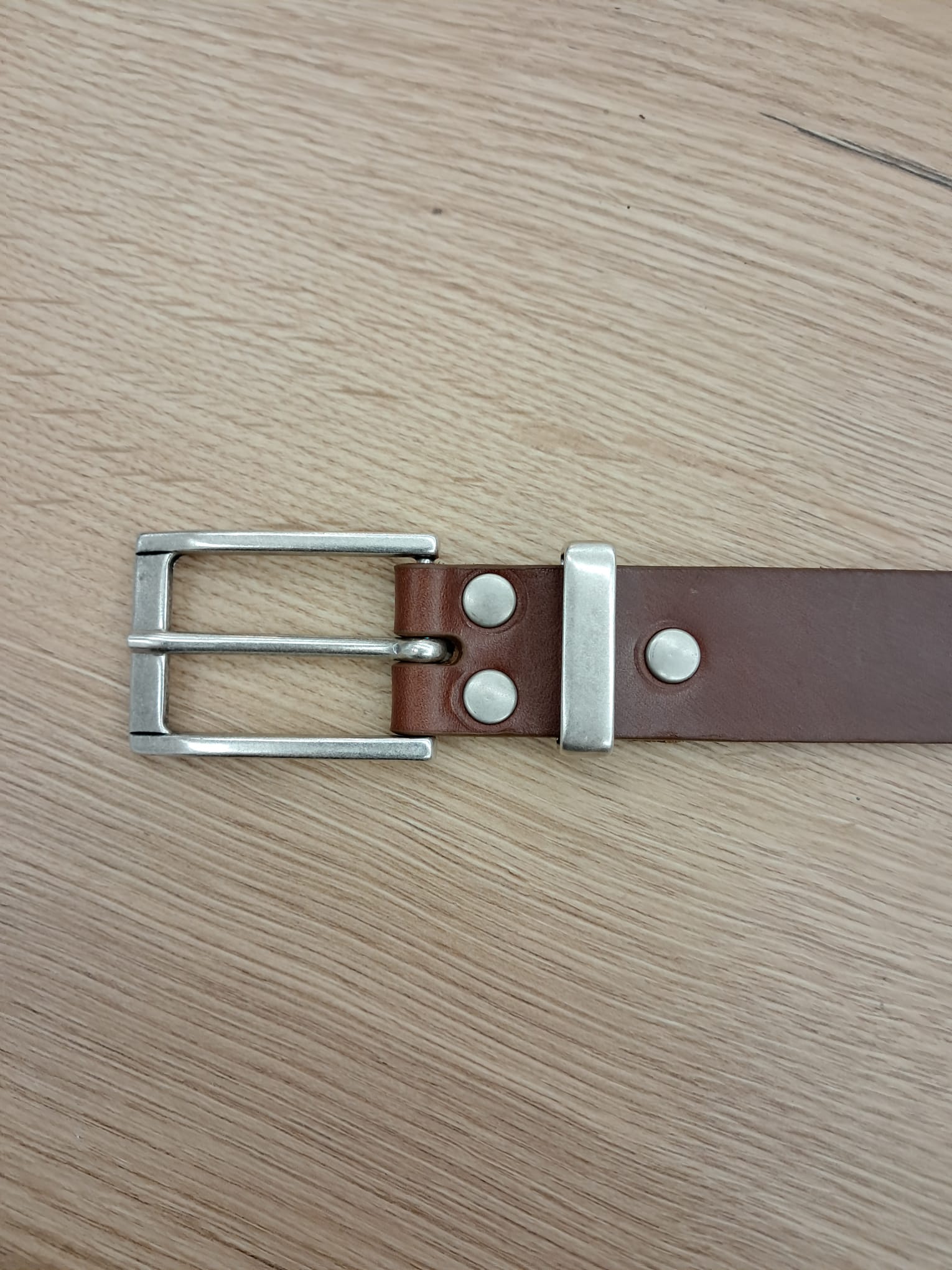 Cinturón de 100% piel vacuno de curtido vegetal.
