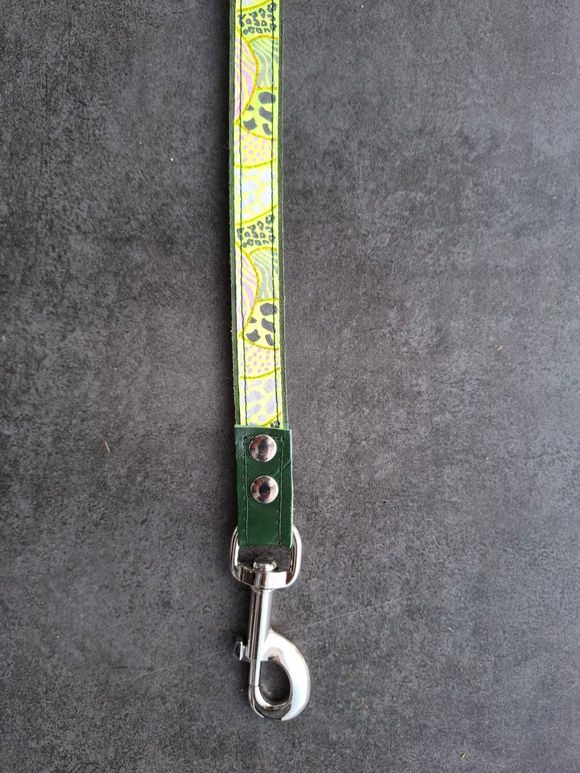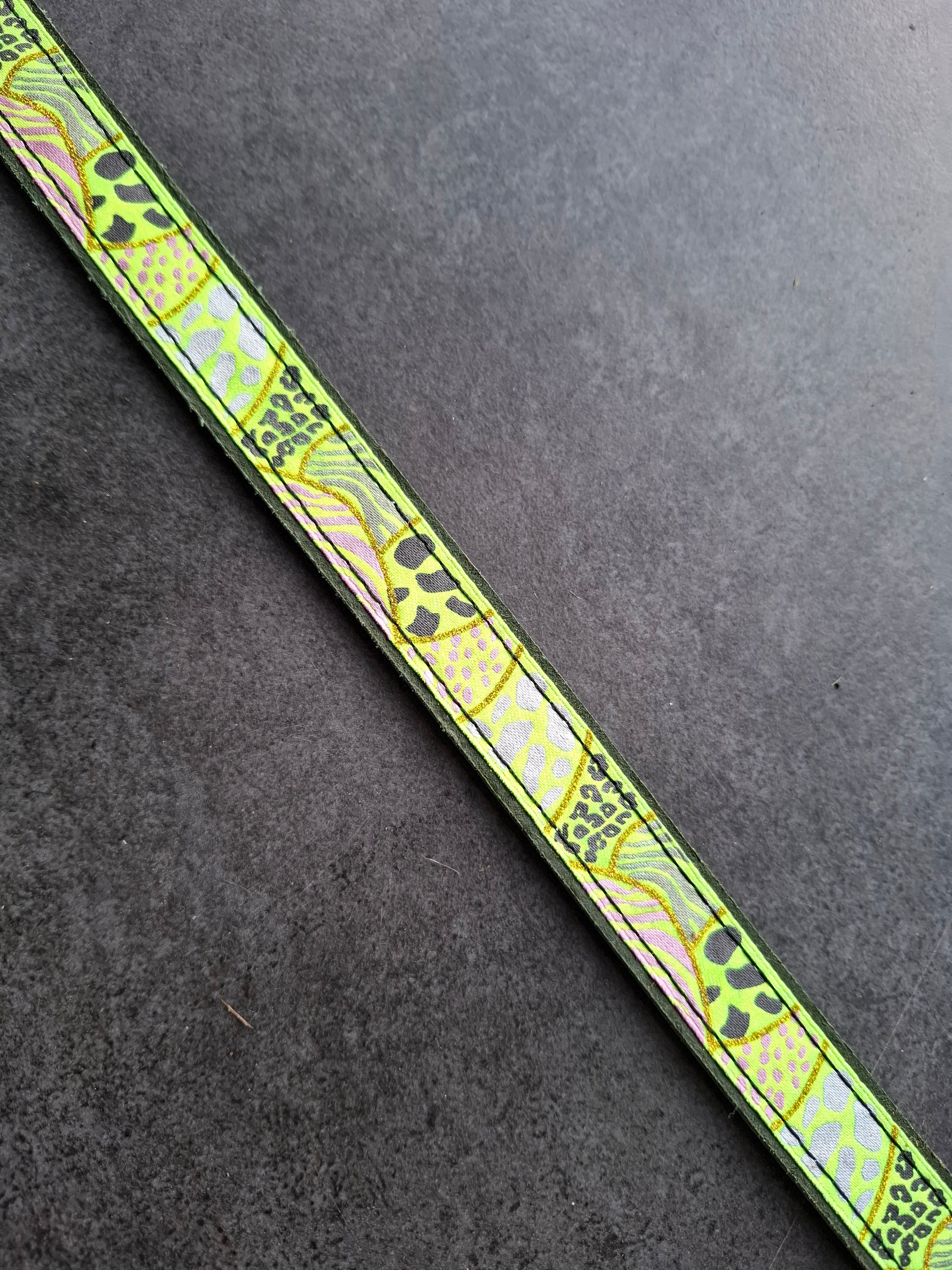 Correa de perro piel y cinta brillo verde y amarillo