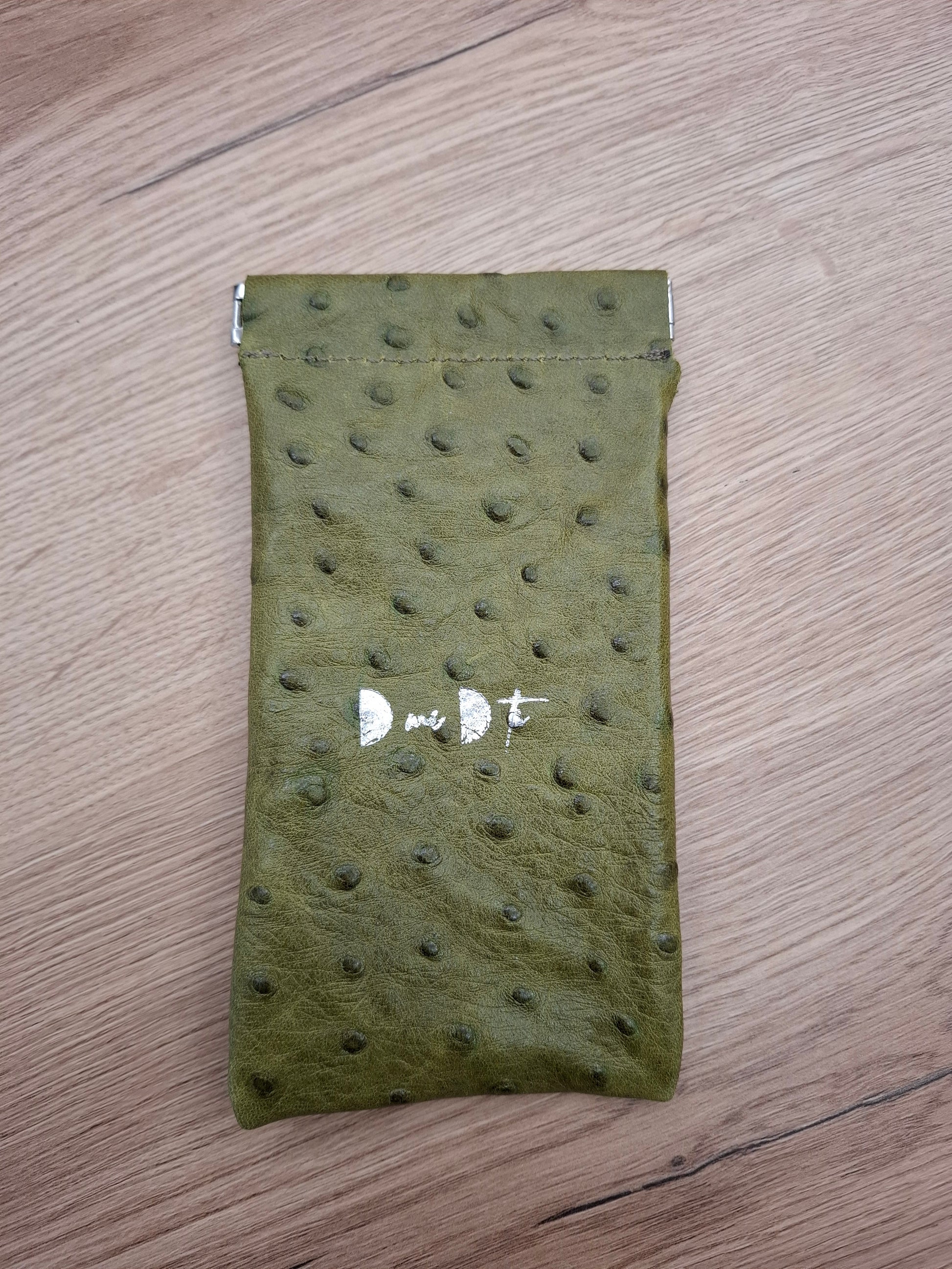 Funda gafas piel verde estampado avestruz
