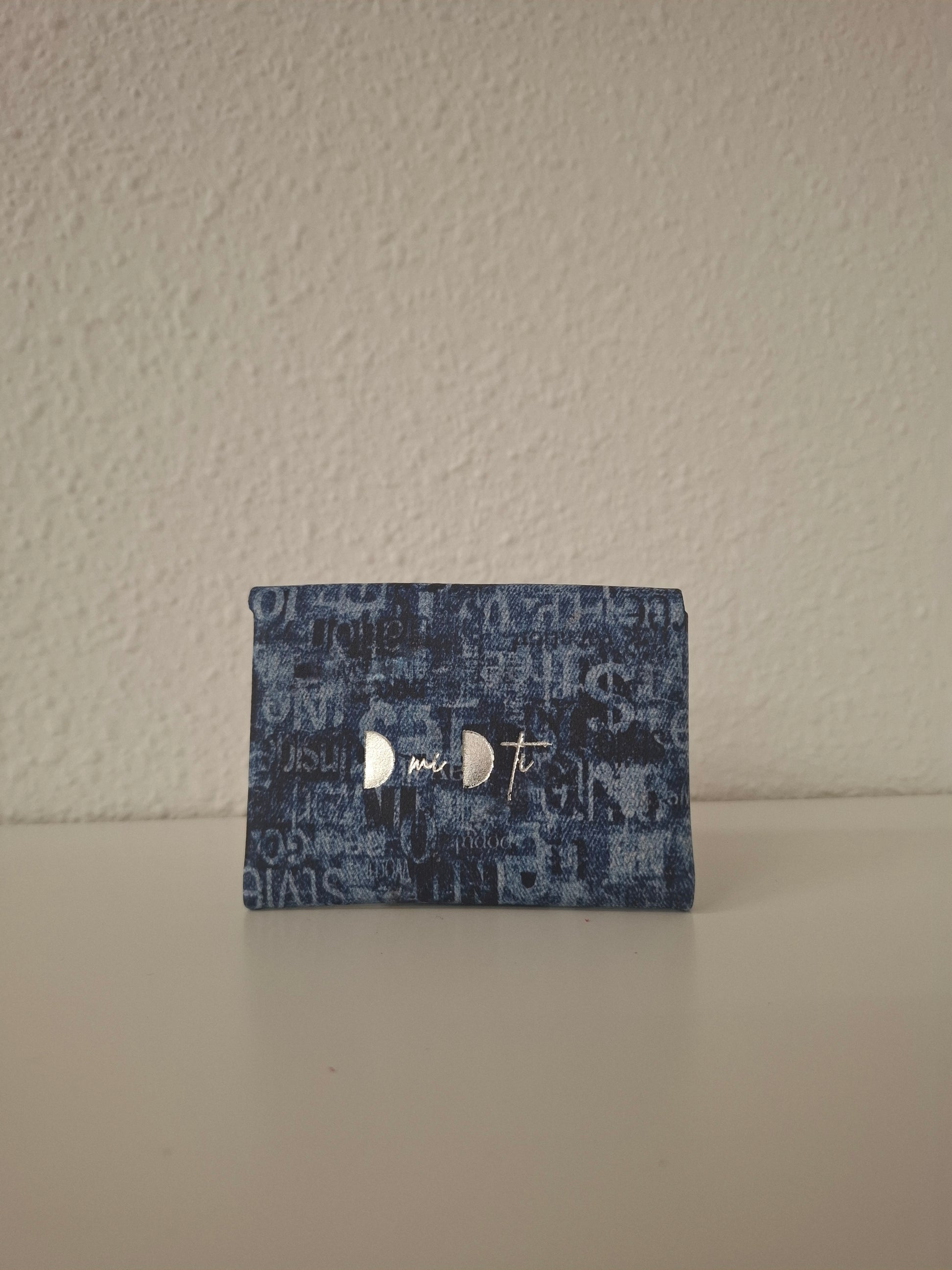 Monedero corchete piel escama azul letras