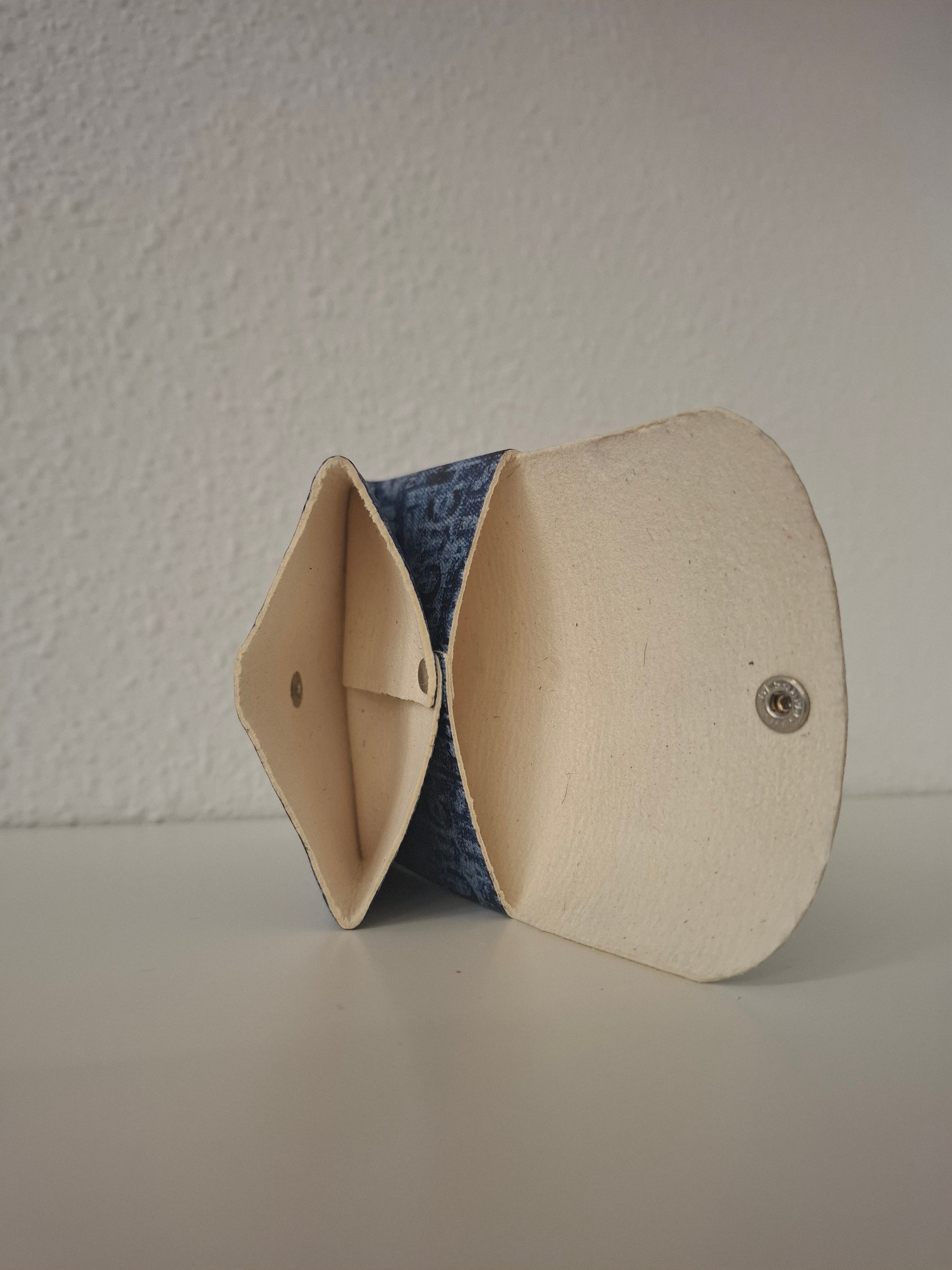Monedero de piel con cierre de corchete a presión. También útil como tarjetero.