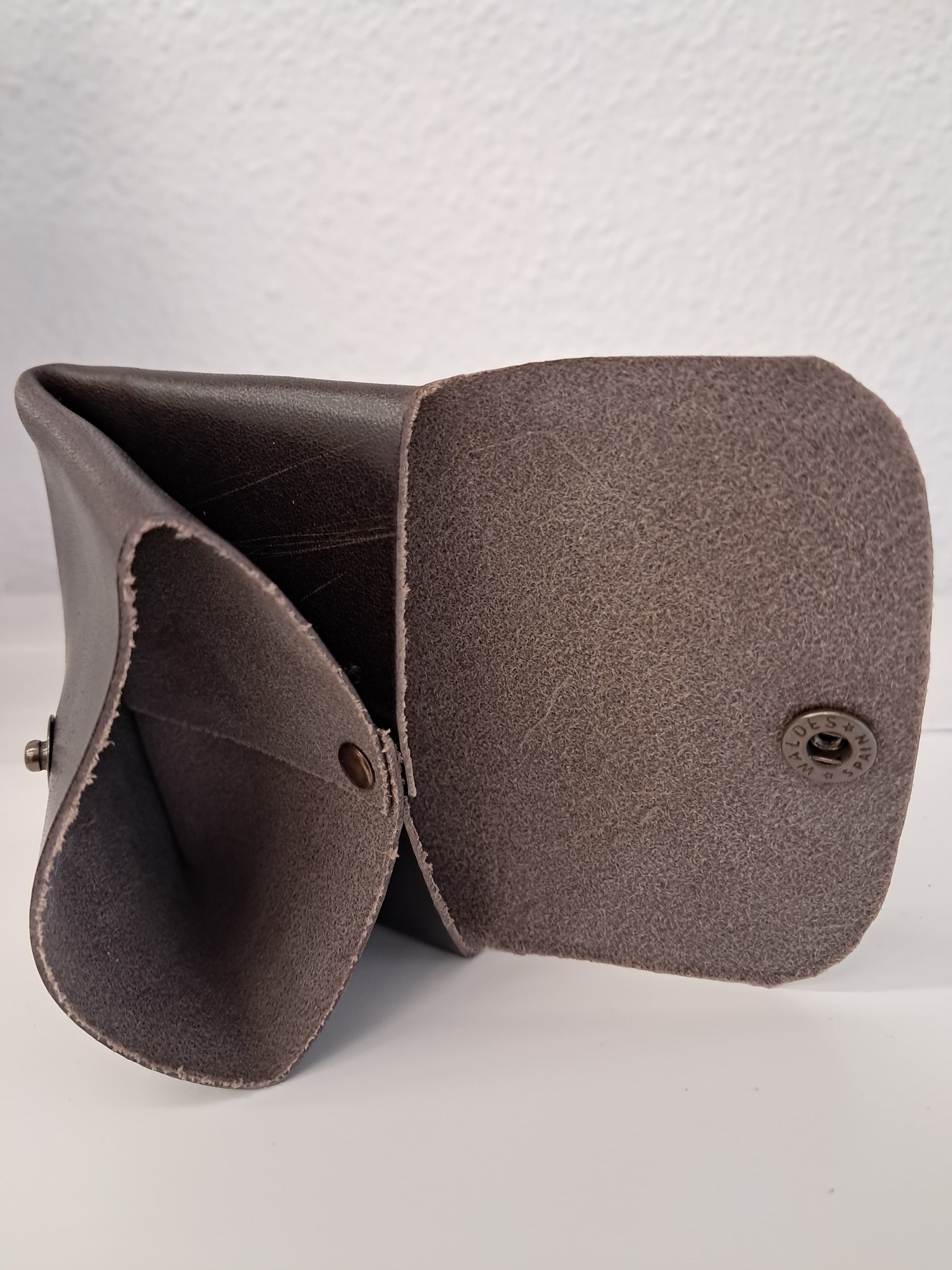 Monedero de piel con cierre de corchete a presión. También útil como tarjetero.