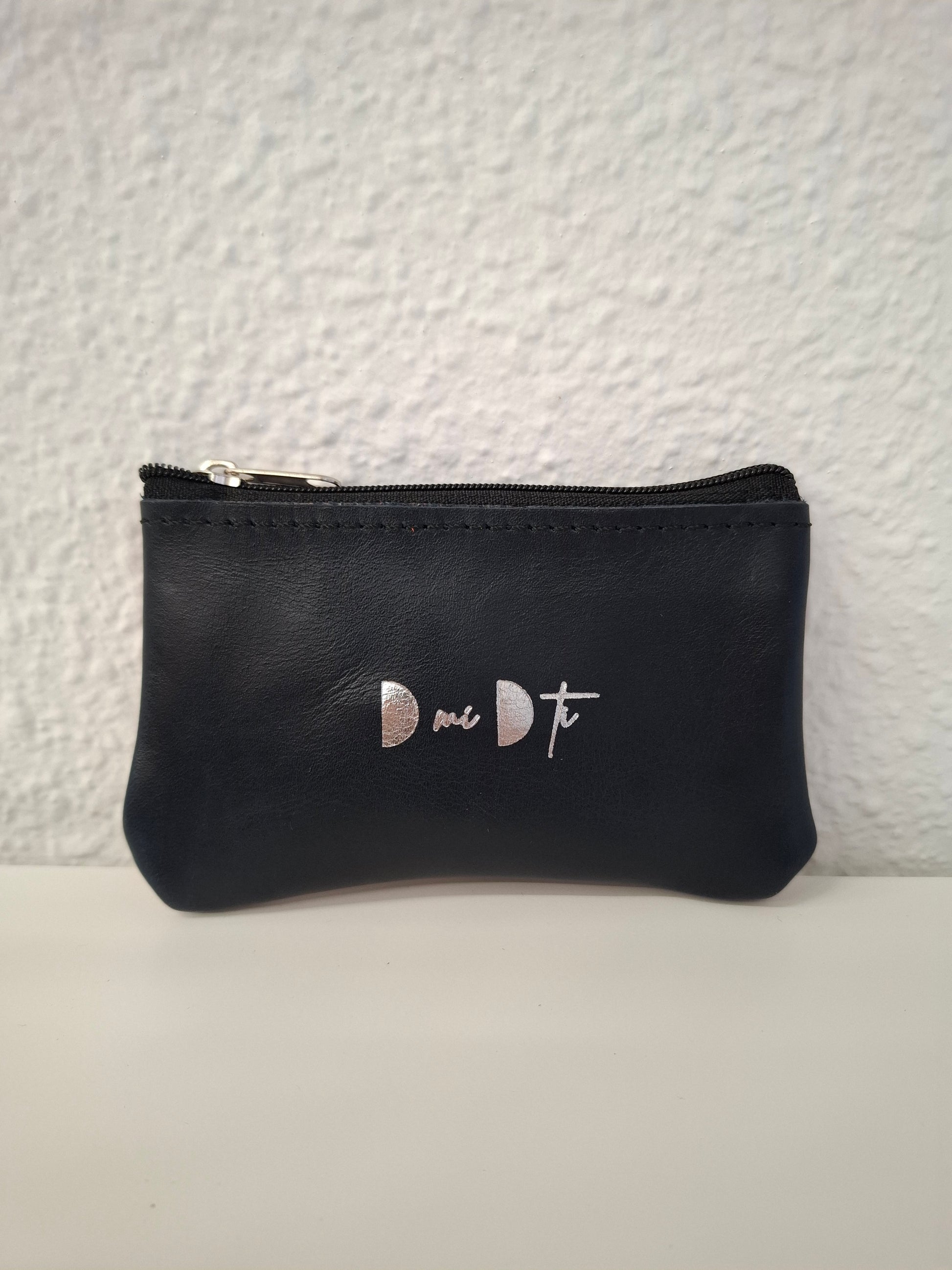 Monedero de piel estampada en la parte delantera y piel lisa en la trasera, con cierre de cremallera.