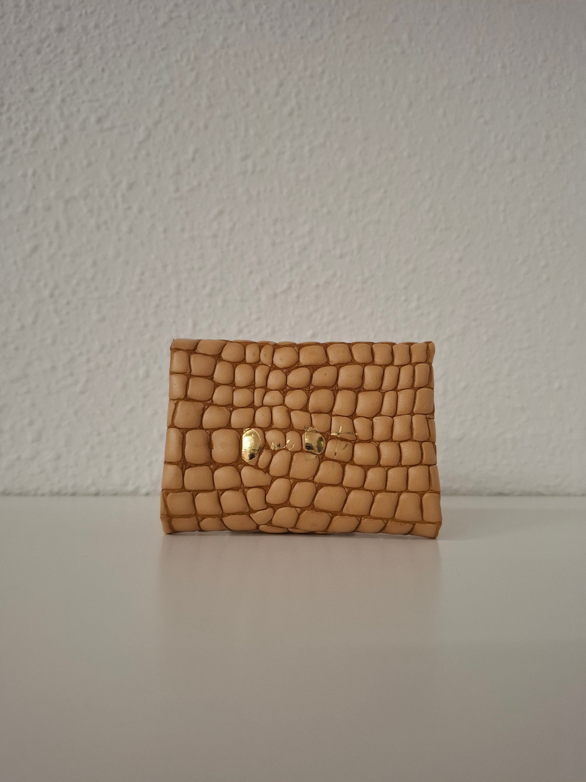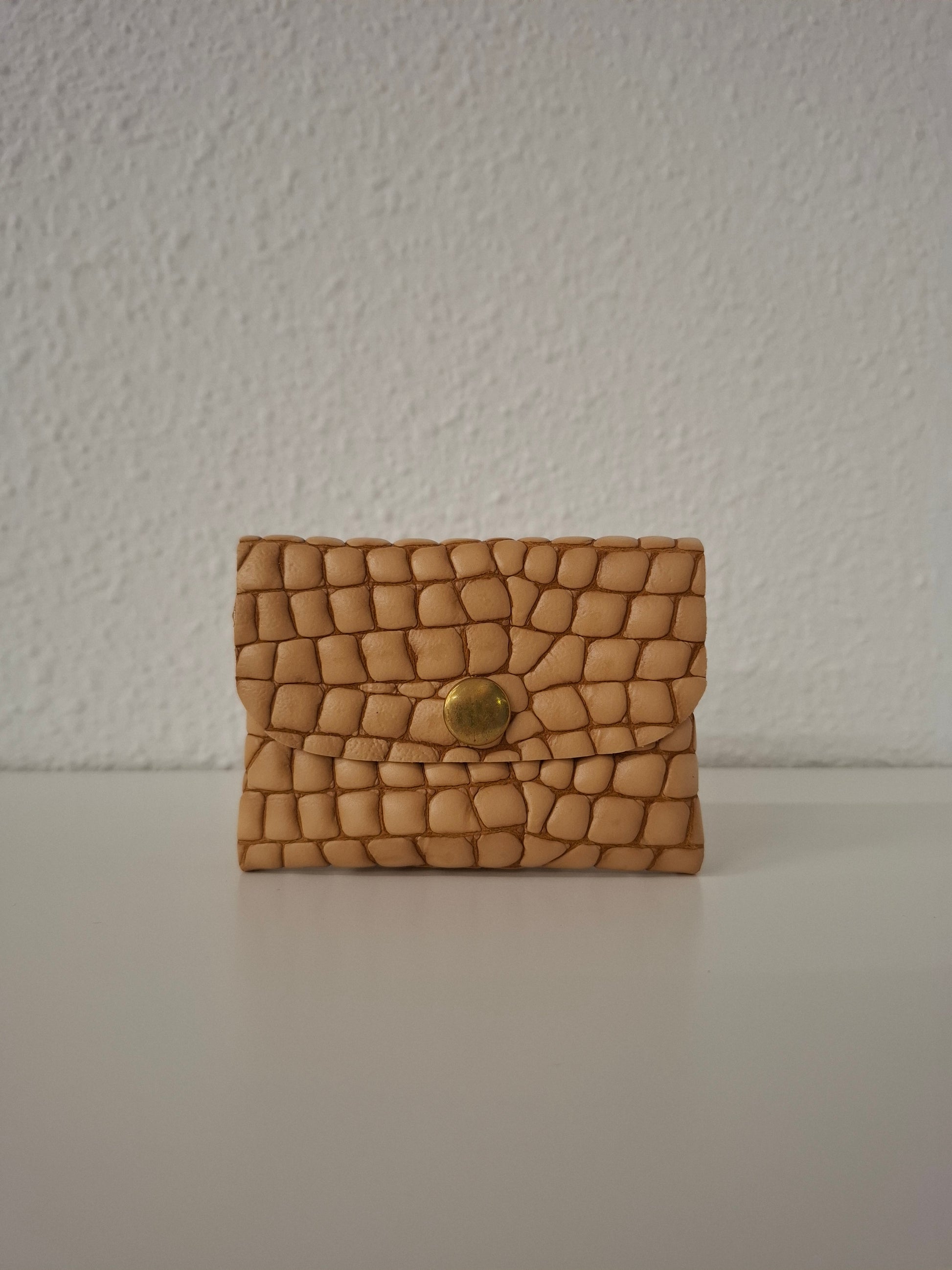 Monedero corchete piel escama miel