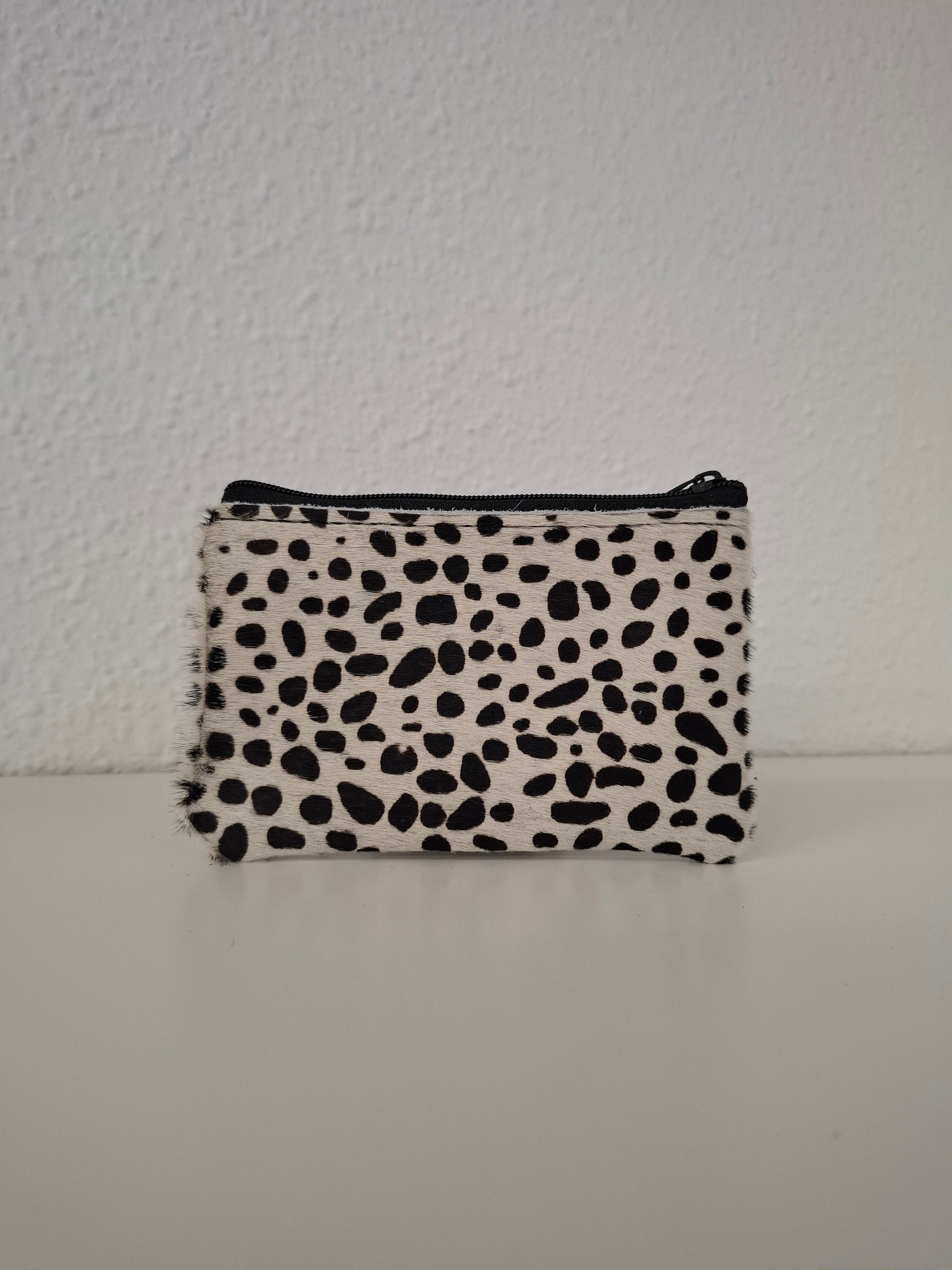 Monedero de piel con pelo dálmata blanco