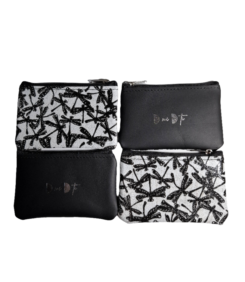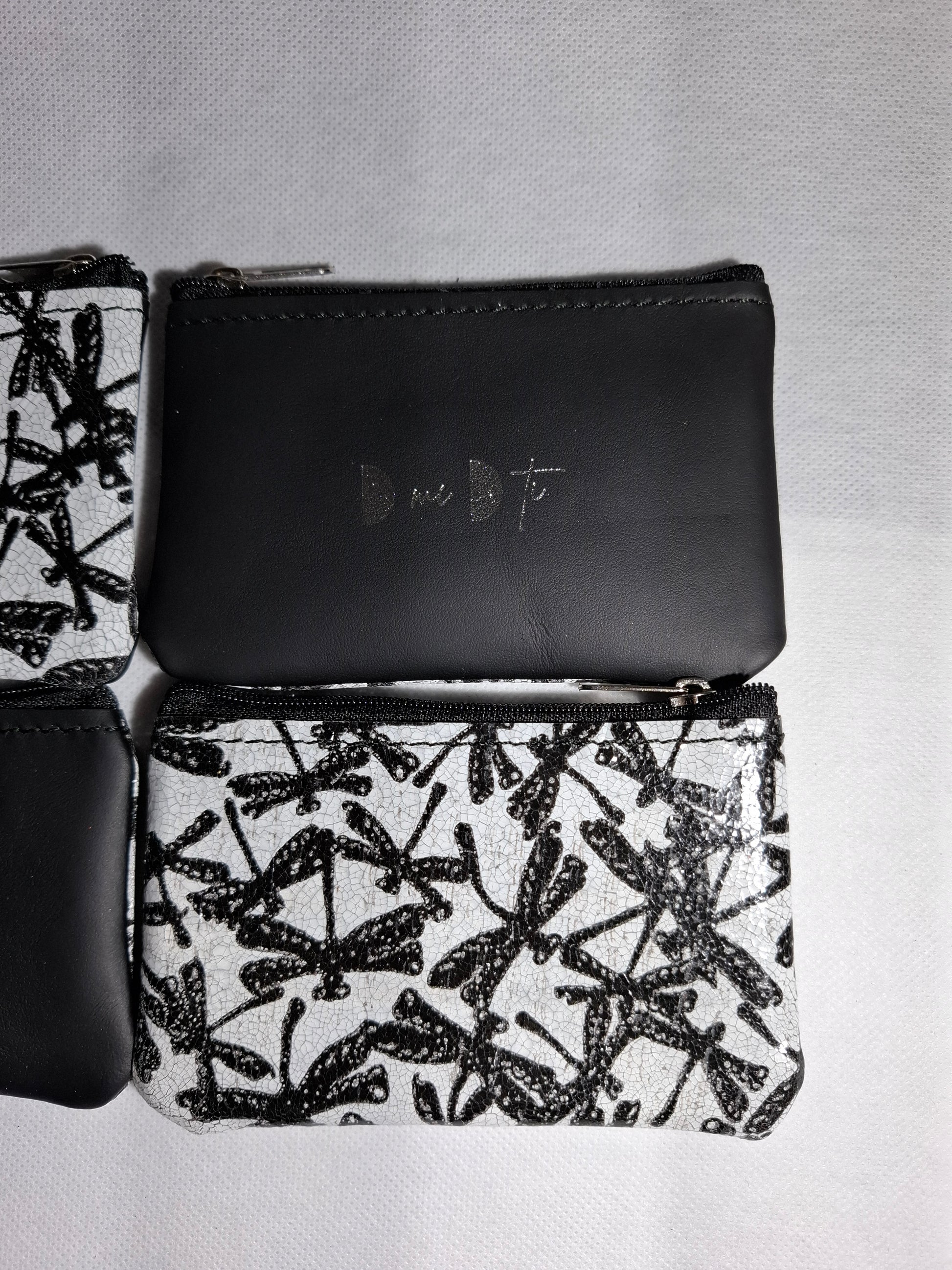 Monedero de piel estampada en la parte delantera y piel lisa en la trasera, con cierre de cremallera.