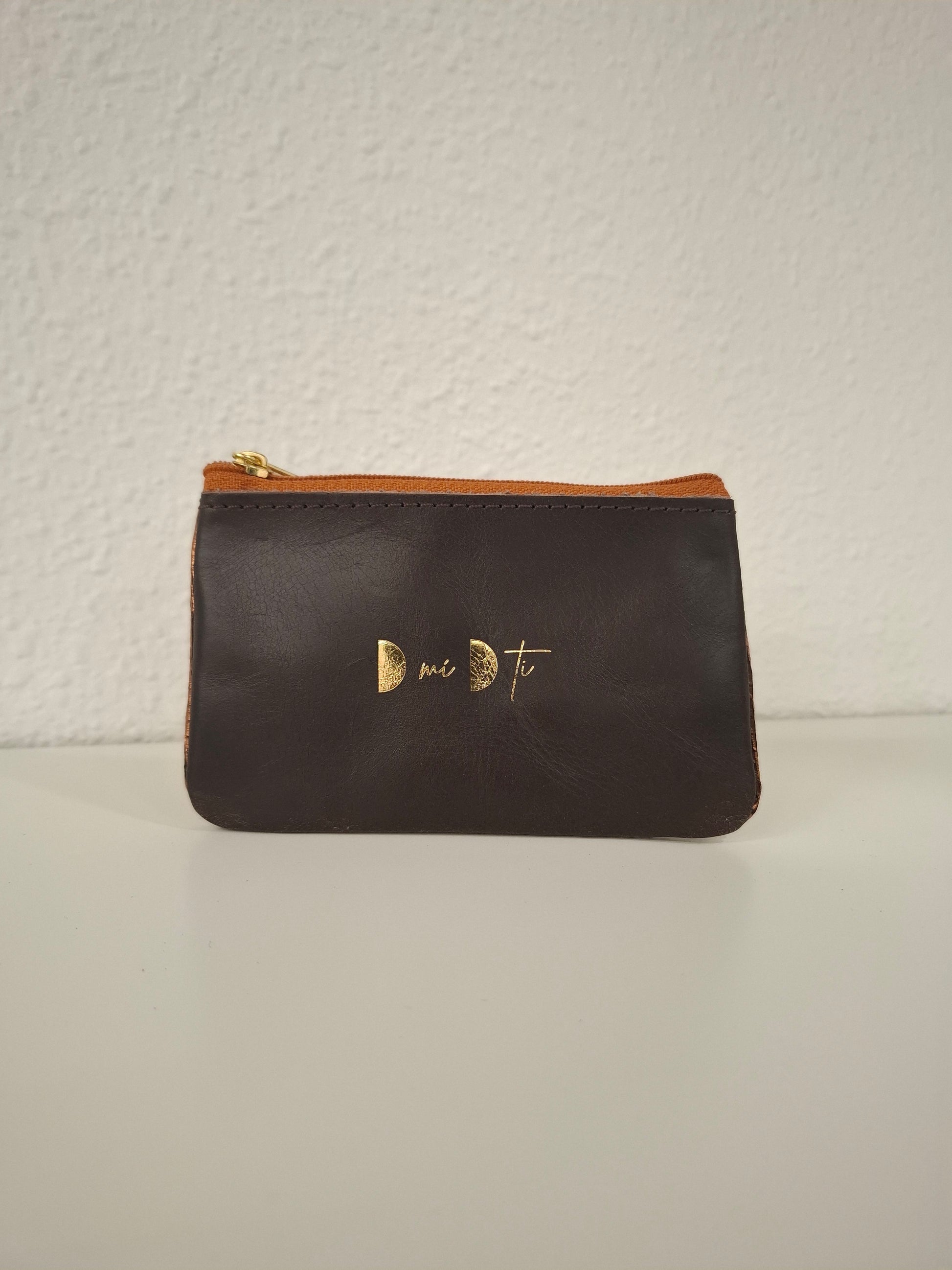 Monedero de piel marrón agrietada