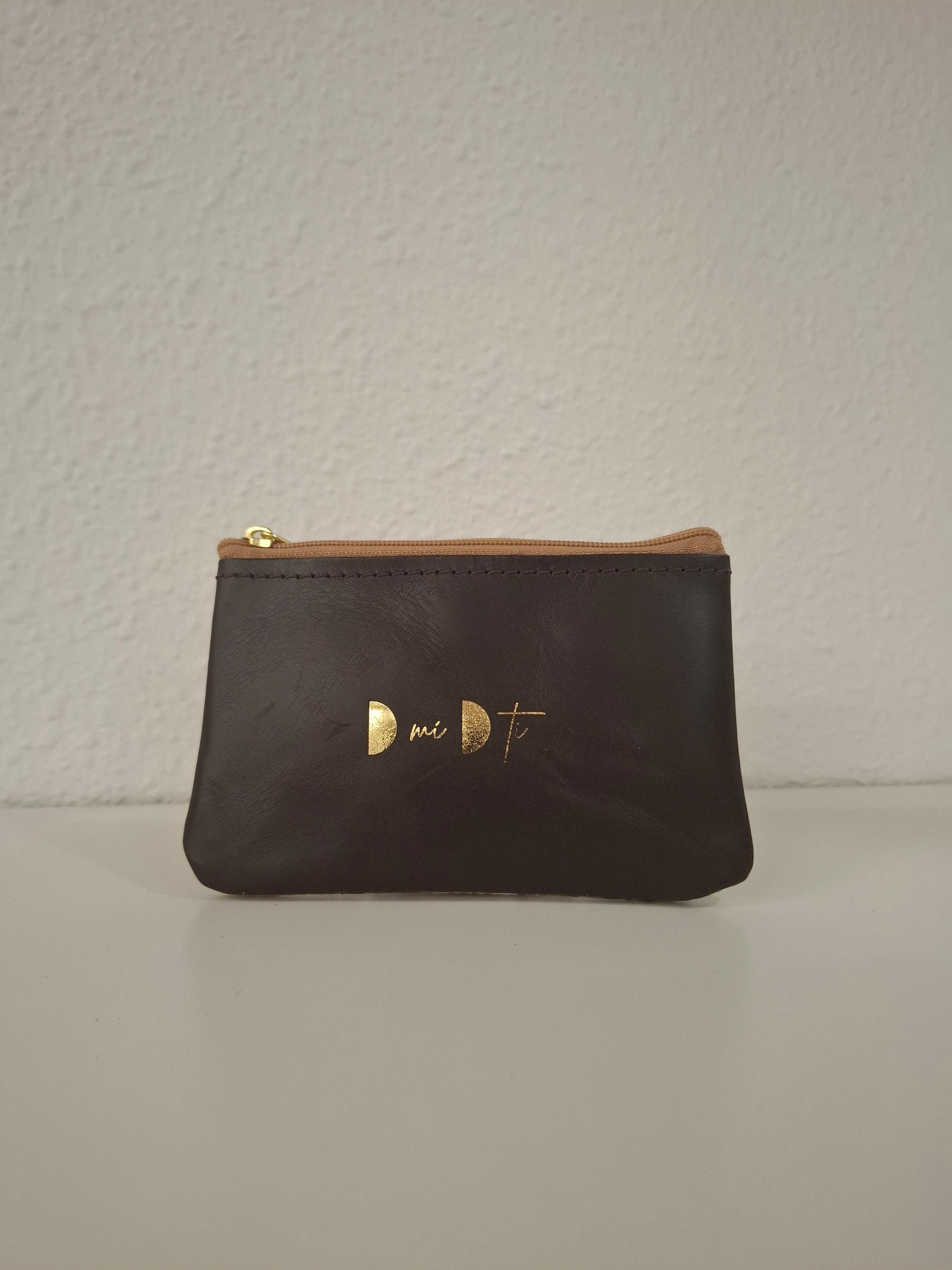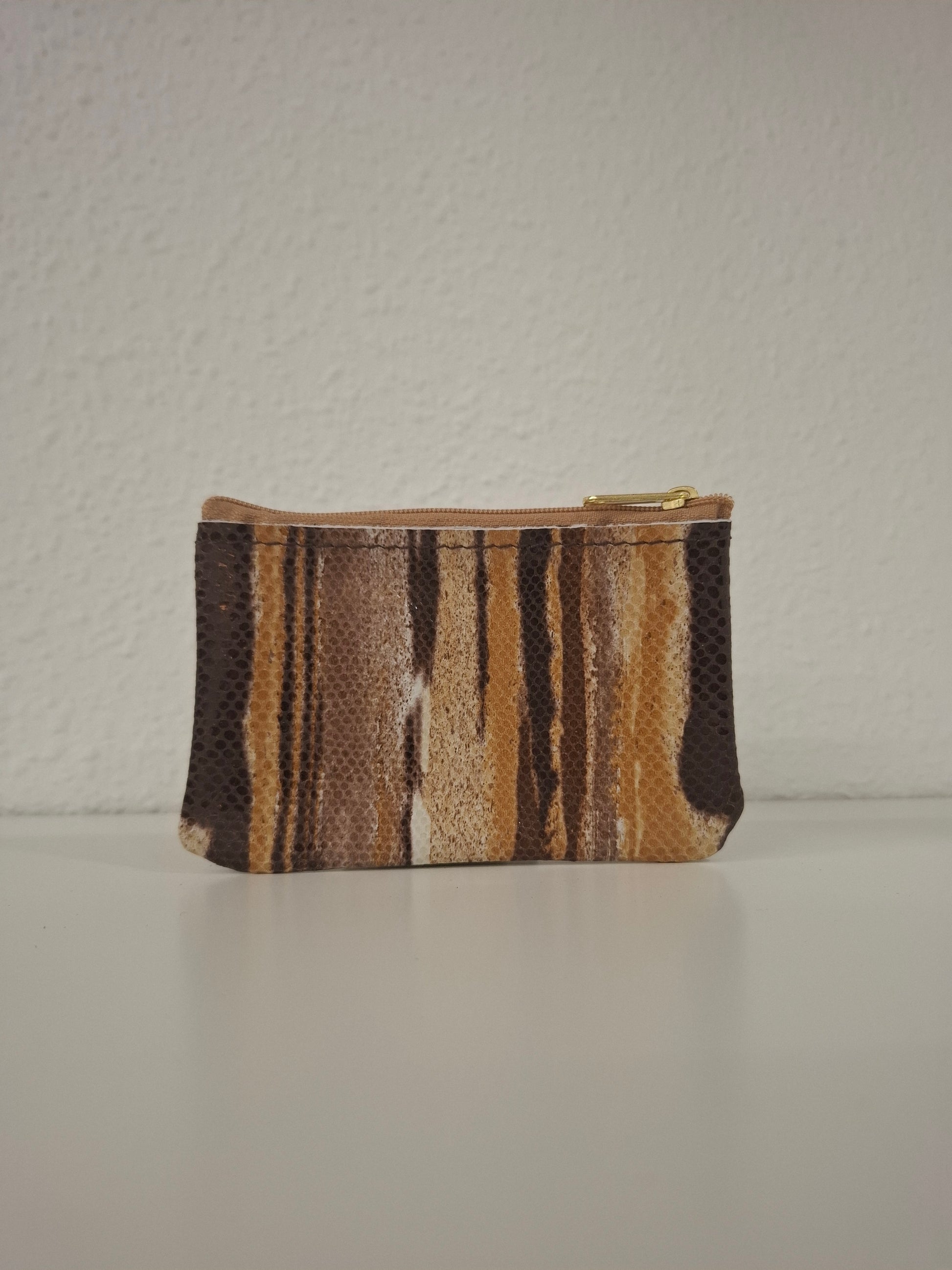 Monedero de piel marrón rayas brillo