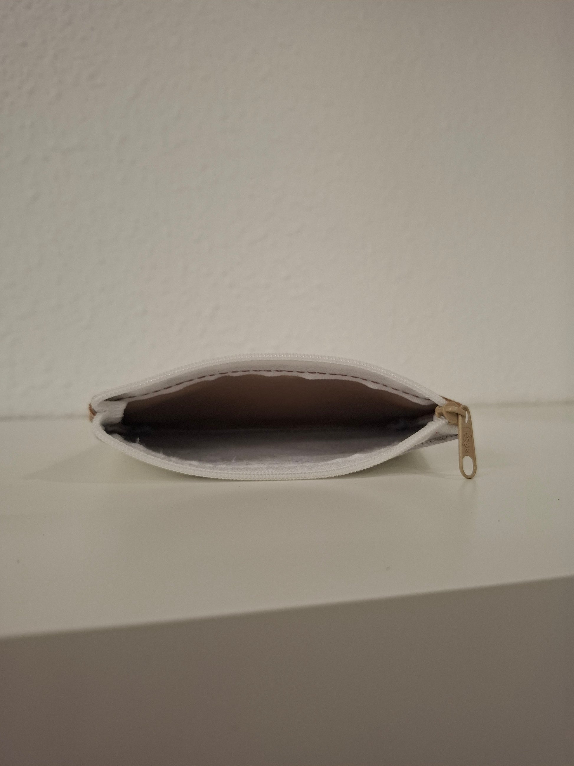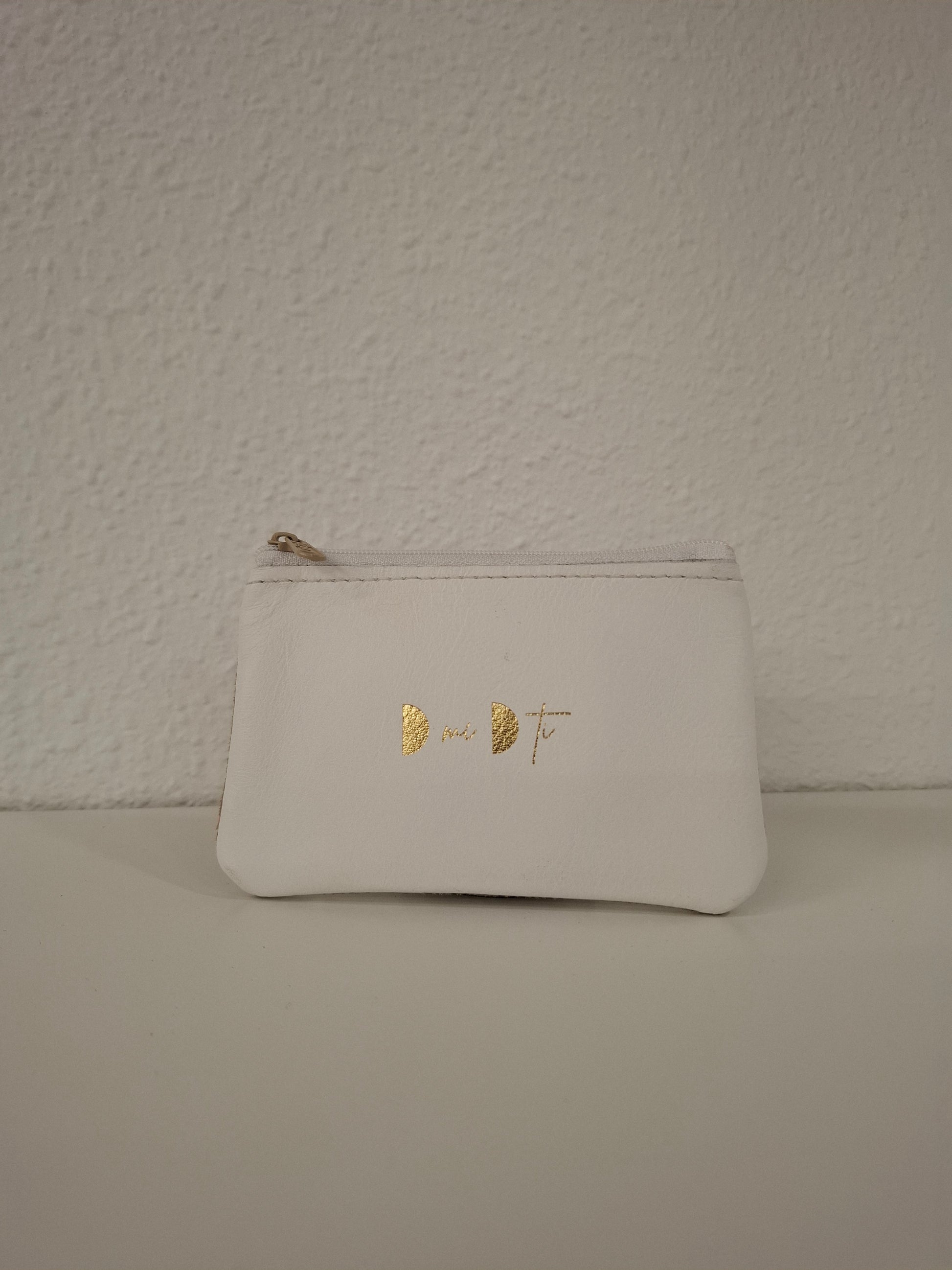 Monedero de piel estampada en la parte delantera y piel lisa en la trasera, con cierre de cremallera.