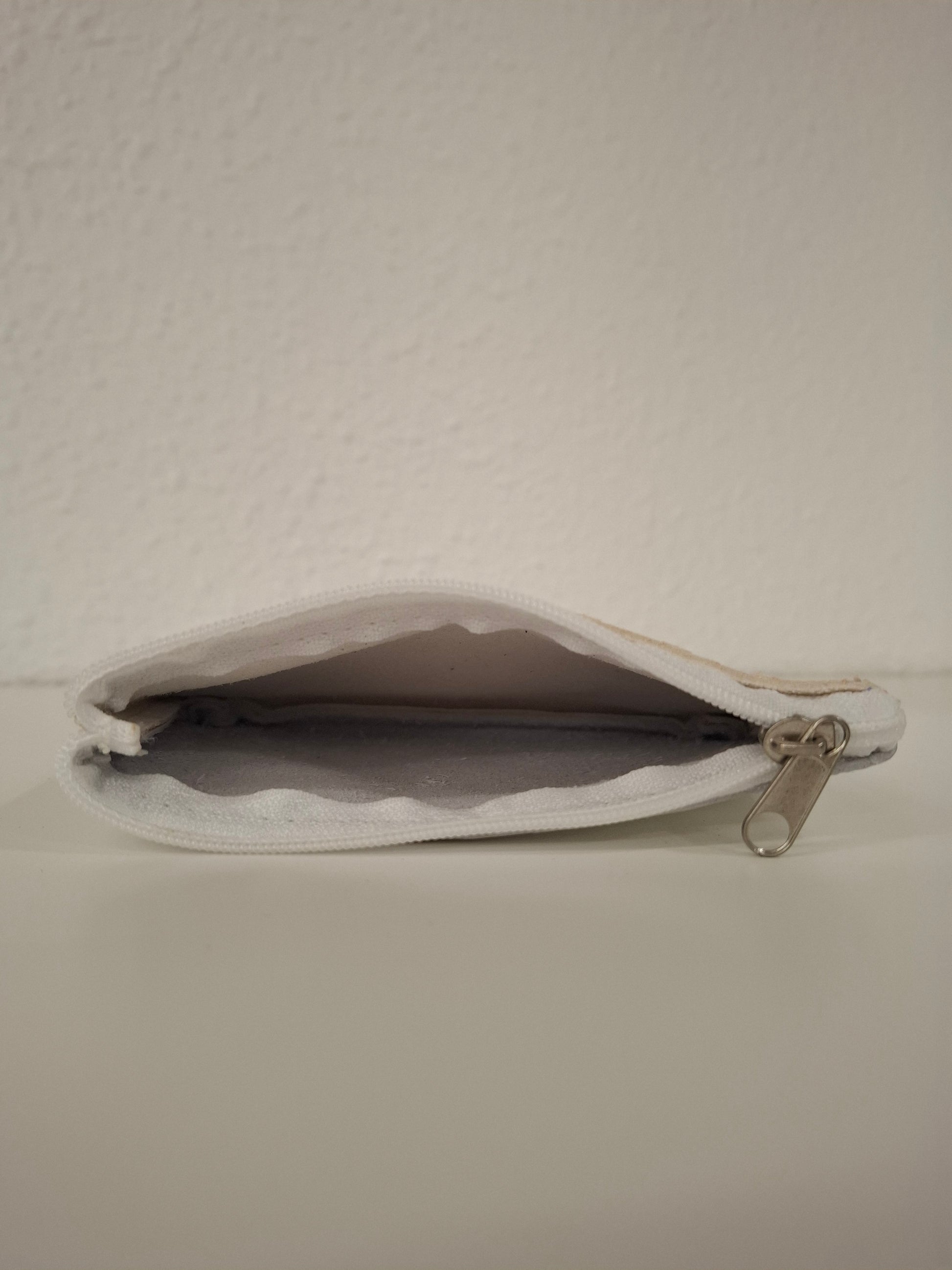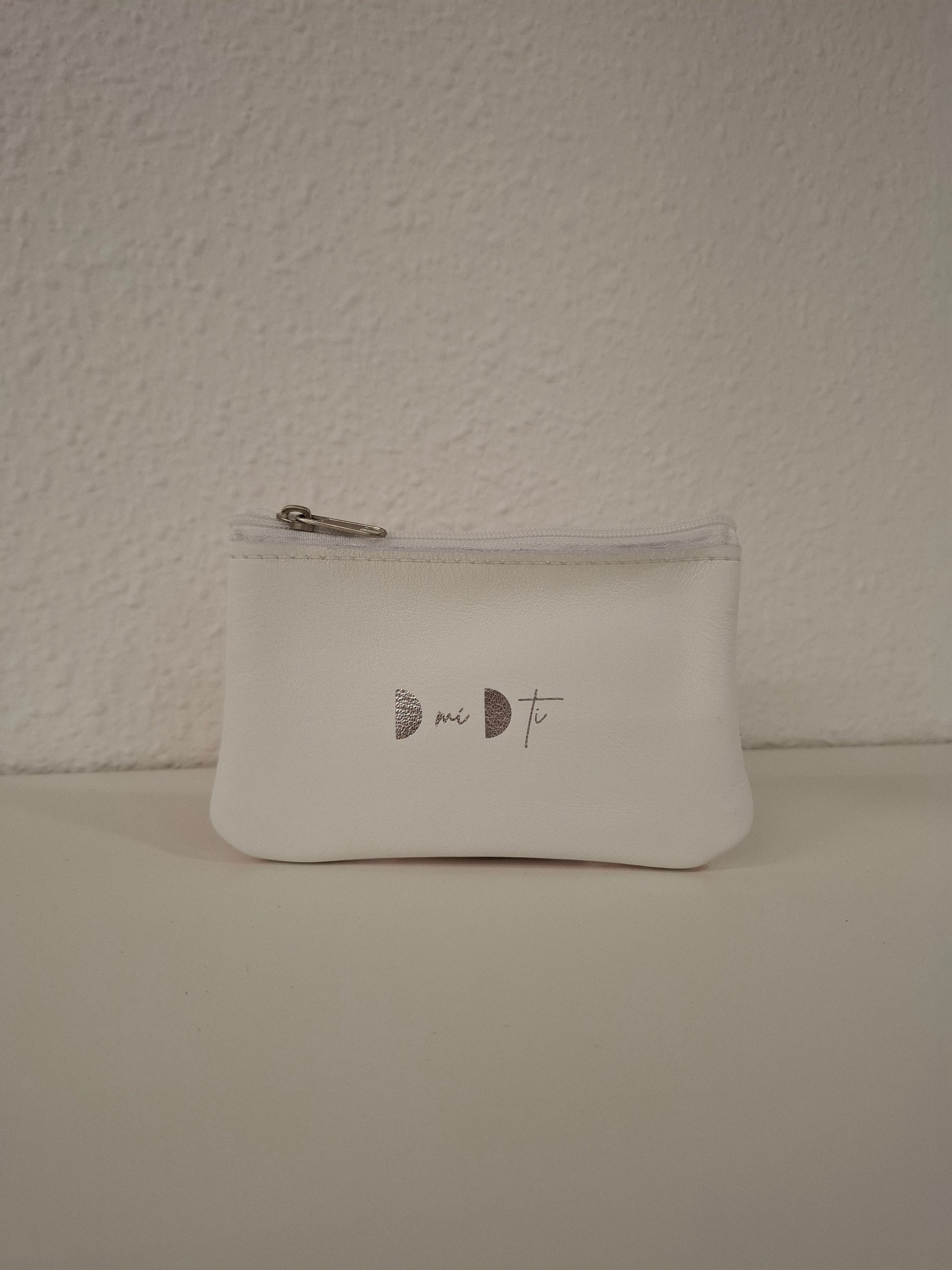 Monedero de piel estampada en la parte delantera y piel lisa en la trasera, con cierre de cremallera.
